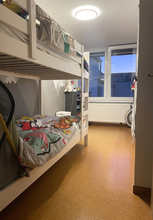 Het appartement is toegankelijk via een private inkom en gelegen op de eerste verdieping in een gebouw zonder lift. Het appartement bestaat uit een leefruimte met open keuken, twee slaapkamers en een badkamer met ligbad + douche.