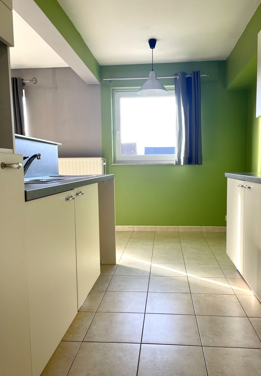 Dit twee-slaapkamerappartement bevindt zich in een rustige straat en is gelegen op de tweede verdieping in een gebouw zonder lift. Het appartement bestaat uit een inkomhal met gastentoilet en vestiaire, ruime leefruimte met open geïnstalleerde keuken (met oven, kookplaat, dampkap, aansluiting vaatwasmachine) en aansluitende bergruimte.