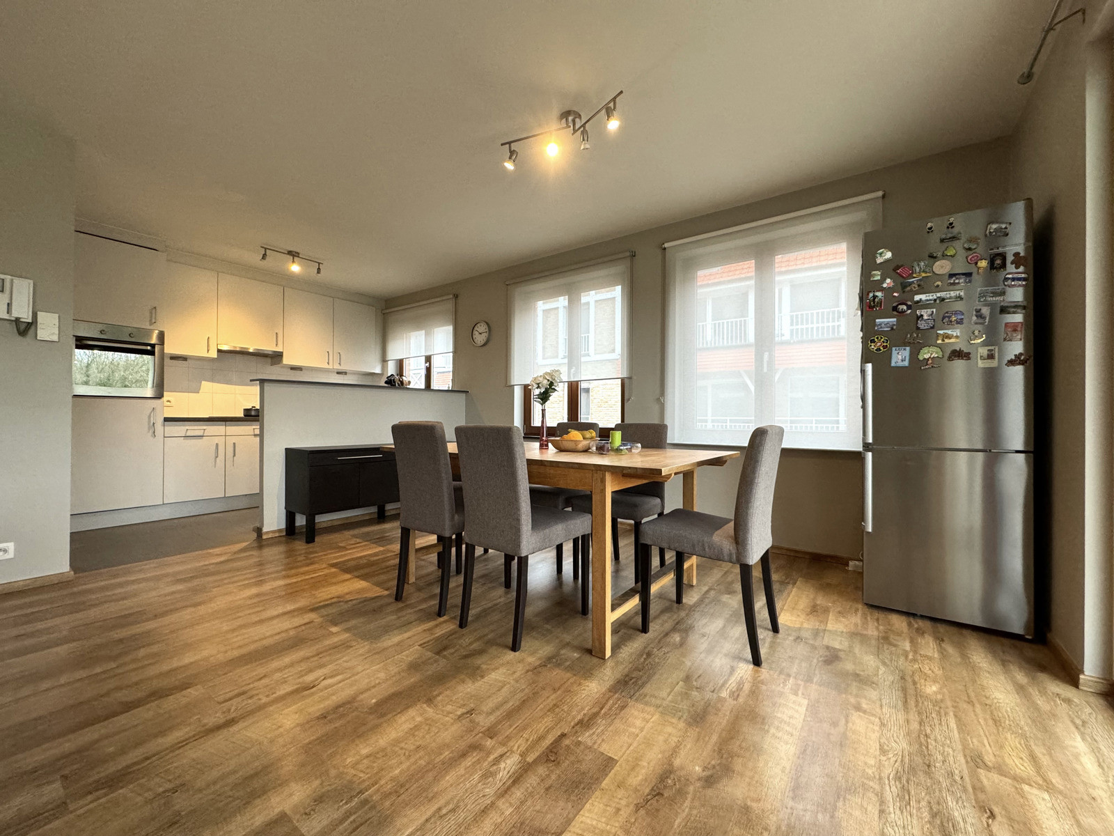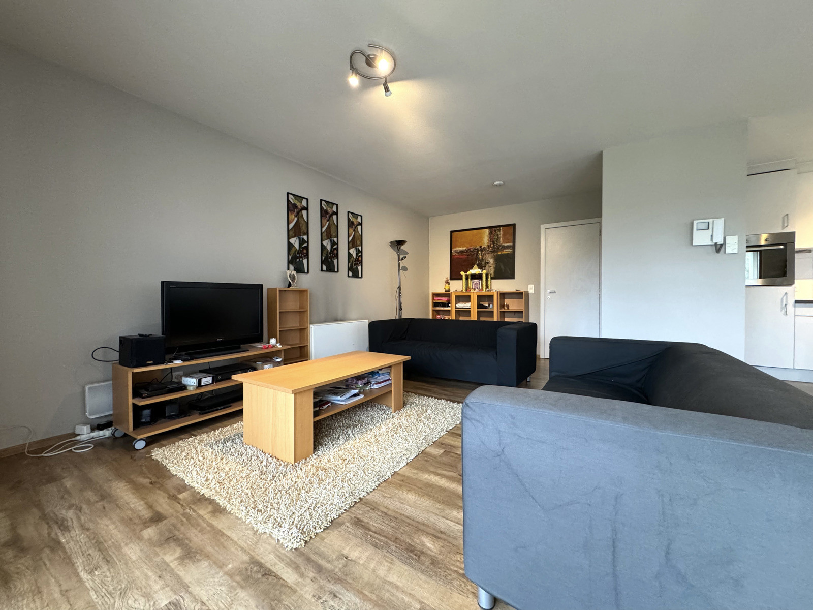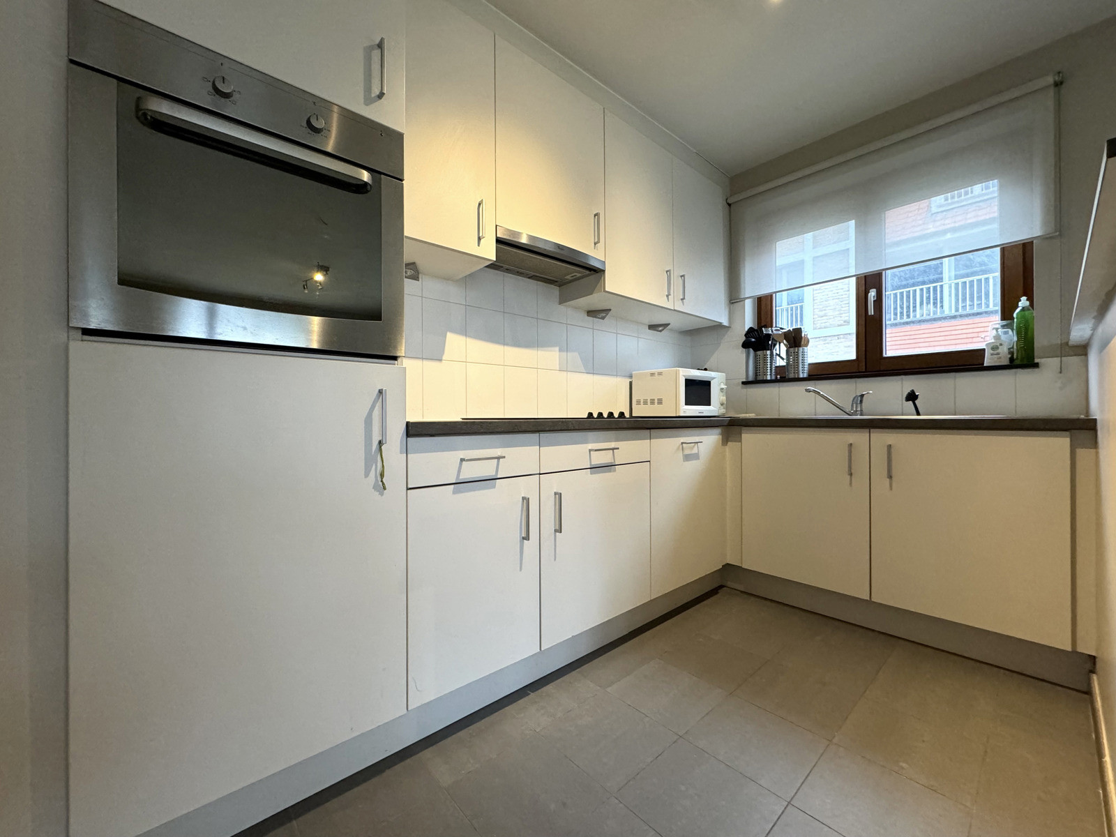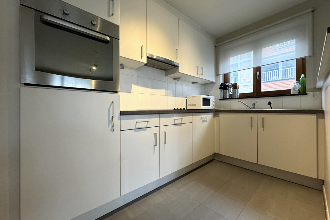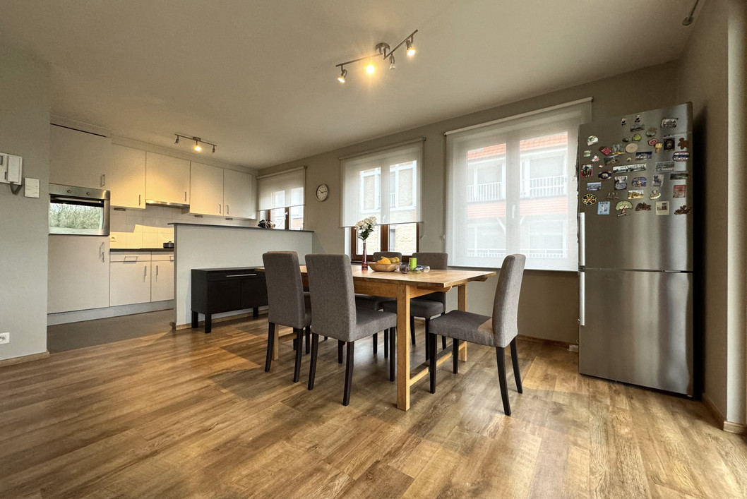 Dit deels bemeubeld appartement gelegen op wandelafstand van het centrum van Erembodegem en station bevindt zich op de eerste verdieping in een gebouw met lift. Het appartement beschikt over een inkomhal met apart gastentoilet. Via deze hal bereikt men de leefruimte met open geïnstalleerde keuken (oven, kookplaat, dampkap, koelkast, vaatwasser en spoelbak). Via de leefruimte heeft men toegang tot het terras met zicht op de Dender rivier. Daarnaast beschikt het appartement over twee slaapkamers en een badkamer voorzien van ligbad met douche functie, toilet en dubbele wastafel. Het appartement wordt bemeubeld verhuurd. Staanplaats aan de voorzijde van het gebouw is inbegrepen in de huurprijs. Dit ruime appartement is ideaal voor wie op zoek is naar rust, ruimte en een centrale ligging. Huurprijs 1100,- EUR/ maand en GEEN GEMEENSCHAPPELIJKE KOSTEN. Beschikbaar vanaf 01/01/2026.