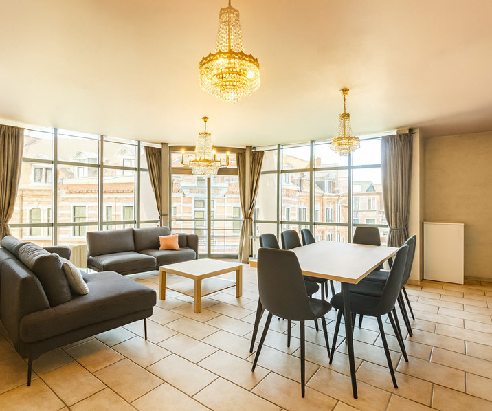 Dit ruim en energiezuinig appartement is gelegen op de derde verdieping in een gebouw met lift en bestaat uit een inkomhal, een ruime en enorm lichtrijke leefruimte dankzij grote glaspartijen, een keuken met aansluitend de berging, badkamer met dubbele wastafel en ligbad, apart toilet en twee slaapkamers. Ondergronds is er een privatekelderberging aanwezig alsook een gemeenschappelijke afgesloten fietsenberging. Overal dubbele beglazing, centrale verwarming op aardgas, conforme elektriciteit en een EPC B zijn slechts enkele troeven! Dit appartement is ideaal voor wie belang hecht aan bereikbaarheid ( oa station, openbaar vervoer, parkeergelegenheid Graanmarkt en postsite) én voor wie graag alles op wandelafstand heeft ( winkels, grote markt, scholen, Utopia,...). Potentiële verhuurwaarde +/- 875 euro per maand. Mis deze kans niet en contacteer ons via 053/423001!