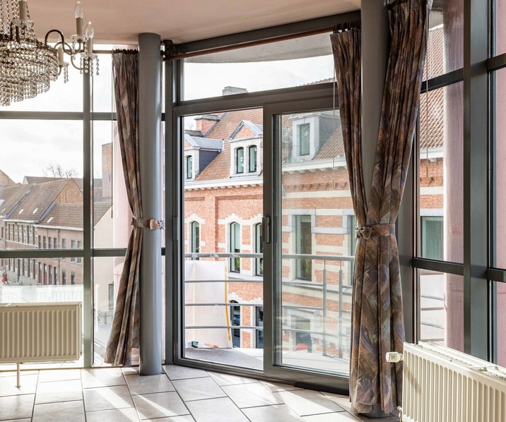 Dit ruim en energiezuinig appartement is gelegen op de derde verdieping in een gebouw met lift en bestaat uit een inkomhal, een ruime en enorm lichtrijke leefruimte dankzij grote glaspartijen, een keuken met aansluitend de berging, badkamer met dubbele wastafel en ligbad, apart toilet en twee slaapkamers. Ondergronds is er een privatekelderberging aanwezig alsook een gemeenschappelijke afgesloten fietsenberging. Overal dubbele beglazing, centrale verwarming op aardgas, conforme elektriciteit en een EPC B zijn slechts enkele troeven! Dit appartement is ideaal voor wie belang hecht aan bereikbaarheid ( oa station, openbaar vervoer, parkeergelegenheid Graanmarkt en postsite) én voor wie graag alles op wandelafstand heeft ( winkels, grote markt, scholen, Utopia,...). Potentiële verhuurwaarde +/- 875 euro per maand. Mis deze kans niet en contacteer ons via 053/423001!