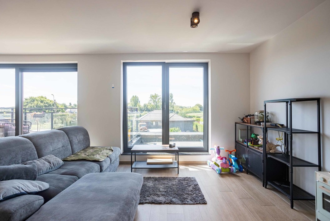 Op de tweede verdieping van een recent gebouw met lift vinden we dit lichtrijk en energiezuinig appartement, perfect gelegen nabij het centrum van Lede, winkels, station en openbaar vervoer.