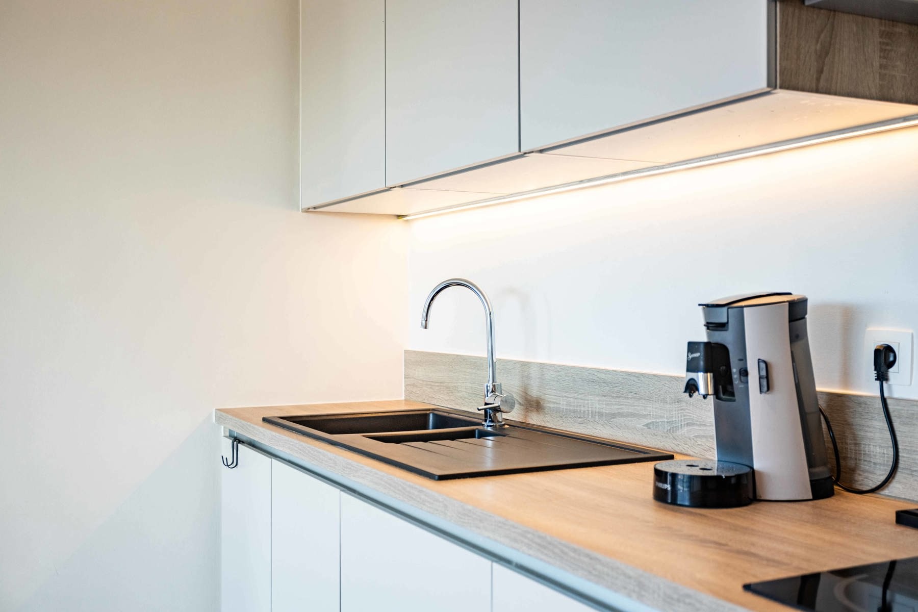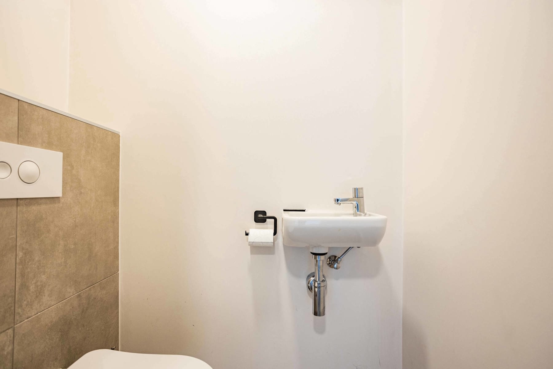 Bij het betreden van het appartement valt meteen de strakke indeling en de overvloed aan natuurlijk licht op. De inkomhal met gastentoilet leidt naar de ruime leefruimte met grote raampartijen die zorgen voor een aangename lichtinval. De open, volledig uitgeruste keuken sluit naadloos aan op de leefruimte en maakt dit de ideale plek om te koken én te genieten.