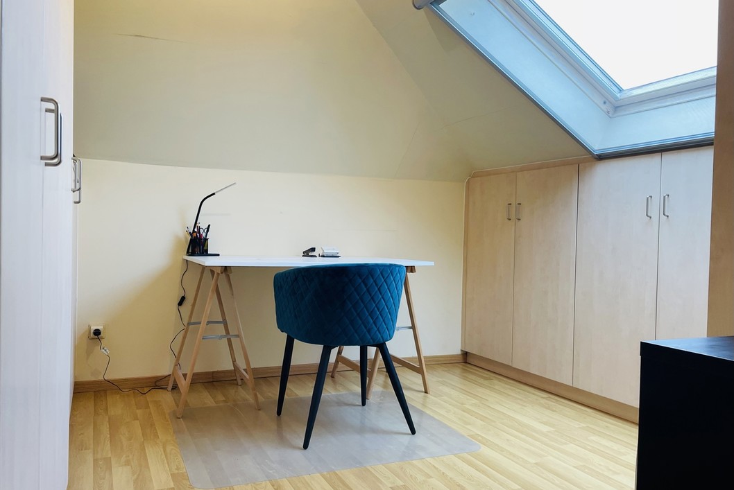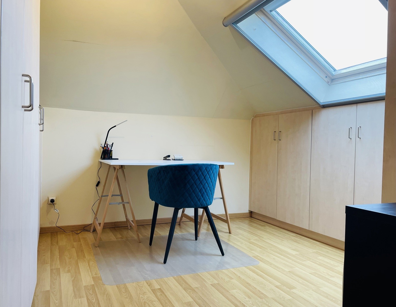 De eerste verdieping biedt twee ruime slaapkamers met ingemaakte kastenwand en een derde kamer die dienst kan doen als bureau of kinderkamer. Daarnaast is er een zolderberging aanwezig die perfect kan worden benut als extra opslagruimte.