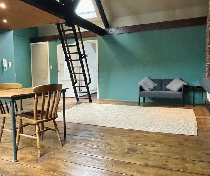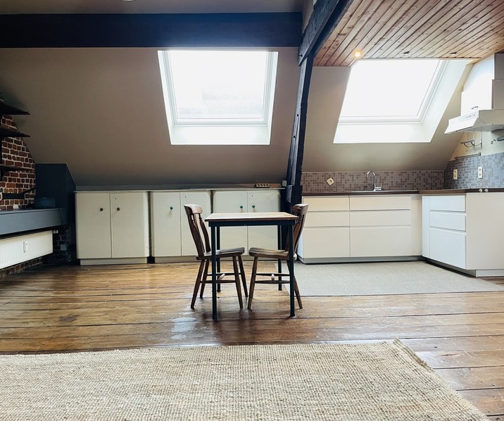 De woning straalt authenticiteit uit dankzij de mooie houten vloeren en zichtbare houten balken, die zorgen voor een warm en ruimtelijk gevoel. De lichtrijke leefruimte sluit naadloos aan op een open, geïnstalleerde keuken ? ideaal voor wie houdt van gezellig wonen en koken.