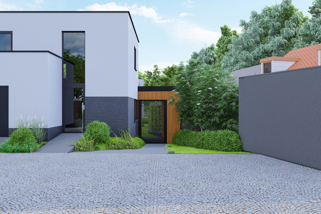 Kleinschalig en energiezuinig project met 3 woningen (2 halfopen, 1 open), rustig gelegen en vlot bereikbaar via de E40 en Oudenaardsesteenweg.