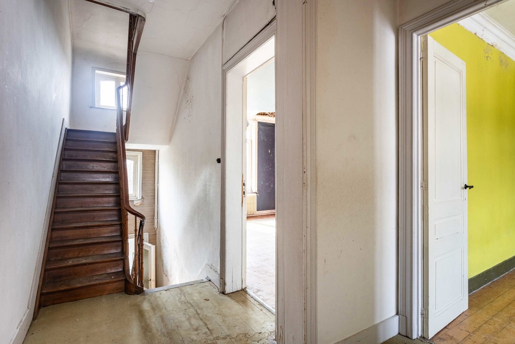 Deze karaktervolle herenwoning is gelegen in het centrum van Aalst en heeft een bewoonbare oppervlakte van maar liefst 305m2! Ze bestaat op het gelijkvloers uit een inkomhal, een prachtige leefruimte met zicht op de achtergelegen tuin en een keuken. Via de traphal komt u op de tussenverdieping waar er een eerste badkamer is. De eerste verdieping omvat een nachthal en 2 slaapkamers. Via de tweede tussenverdieping waar wederom een badkamer aanwezig is komt u op volgende verdieping waar nog 3 extra slaapkamers zijn. De zolderverdieping is bereikbaar via vaste trap en biedt nog mogelijkheid tot uitbreiding. Ondergronds is er een droge kelder. Buiten is er een zuidgerichte stadstuin. Centrale verwarming op gas via hoogrendementsketel. Uitzonderlijke kans!