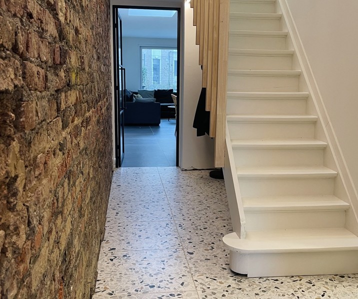 Deze volledig gerenoveerde woning met tuin is gelegen aan de stadsrand van Aalst, op korte afstand van de Grote Markt, scholen, winkels en openbaar vervoer. Bij het betreden van de woning komt u in de inkomhal die toegang geeft tot de lichtrijke leefruimte met een open, volledig geïnstalleerde keuken met aanpalende bergruimte en een mooi zicht op de tuin. Op het gelijkvloers bevinden zich daarnaast een praktische bureauruimte, die ook perfect kan dienen als kinderkamer, en een bergruimte.