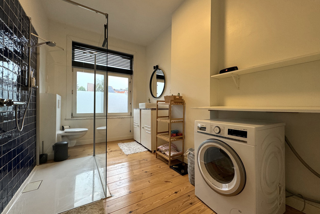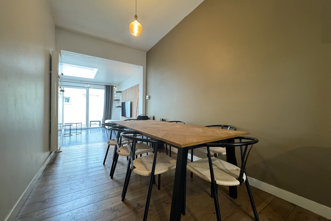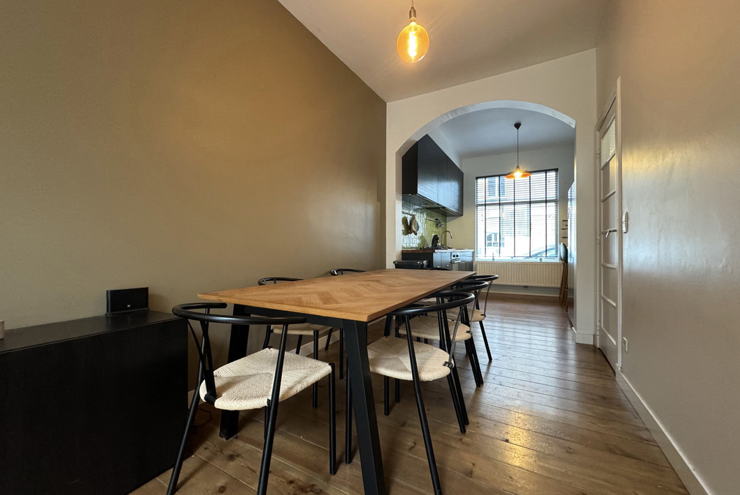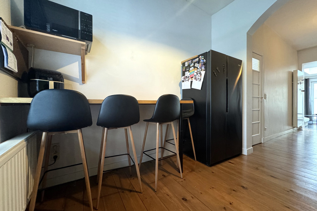Deze charmante rijwoning is gelegen op een rustige locatie in de stadskern van Aalst. De woning bevindt zich op wandel- en fietsafstand van winkels, scholen, openbaar vervoer en het stadscentrum. Dankzij de centrale ligging nabij de stadsring is er tevens een vlotte verbinding richting Gent/Brussel. De woning bestaat op het gelijkvloers uit een inkomhal dewelke toegang geeft tot de leefruimte en eetkamer met open keuken voorzien van ontbijthoek. Verder is er toegang vanuit de woonkamer tot het terras. Op de eerste verdieping bestaat de woning uit een eerste ruime slaapkamer en badkamer voorzien van douche, toilet, wastafel en aansluiting wasmachine/droogkast. Via de doorlopende vaste trap bereikt men de tweede verdieping dewelke bestaat uit twee extra slaapkamers. Tenslotte beschikt de woning over een kelder- en zolderruimte dewelke kan dienen als opslagruimte. Huurprijs: 1075 EUR/maand. Beschikbaar vanaf 1 april 2026.