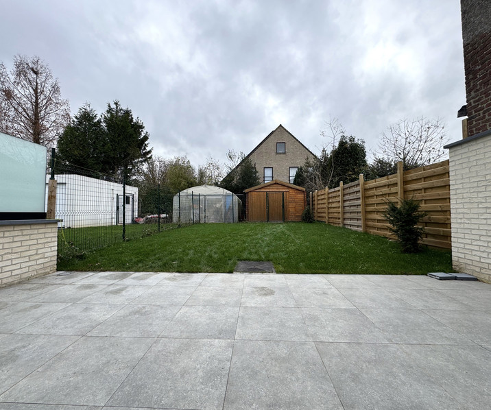 Deze recent gebouwde gesloten bebouwing biedt een combinatie van modern comfort, energiezuinigheid en een rustige ligging. De woning beschikt over een inandige garage en een oprit die plaats biedt voor 1 extra wagen. Achteraan bevindt zich een aangename tuin met een ruim terras, ideaal om in alle rust te ontspannen. Op het gelijkvloers omvat de woning een inkomhal met apart toilet, gevolgd door een ruime en lichtrijke leefruimte. De open, volledig geïnstalleerde keuken is uitgerust met alle moderne toestellen en sluit naadloos aan op de leefruimte. Aansluitend bevindt zich de garage met aansluiting voor wasmachine en droogkast en extra stockageruimte. Op de eerste verdieping zijn er drie volwaardige slaapkamers, een badkamer voorzien van douche, ligbad en dubbele lavabo, en een apart toilet op de nachthal. De woning is uitgerust met zonnepanelen (5000 Wp) en wordt verwarmd via een warmtepomp met vloerverwarming, wat zorgt voor een zeer energiezuinig wooncomfort. De huurprijs: 1300 EUR/maand, beschikbaar in onderling overleg.