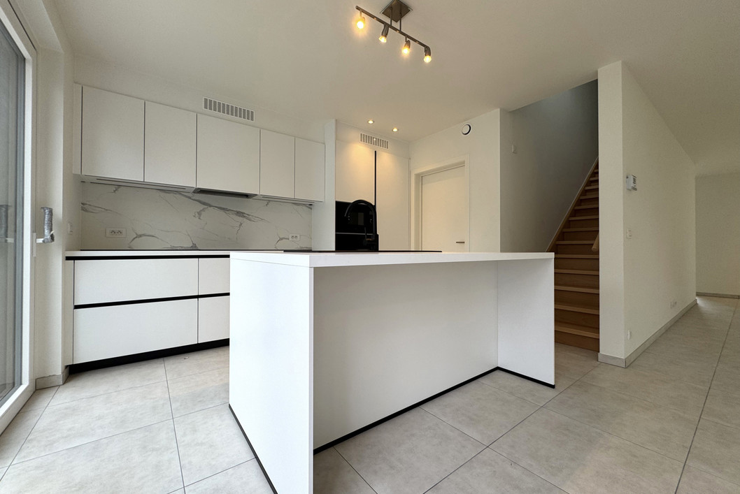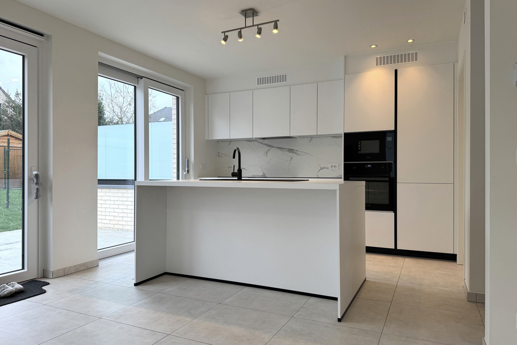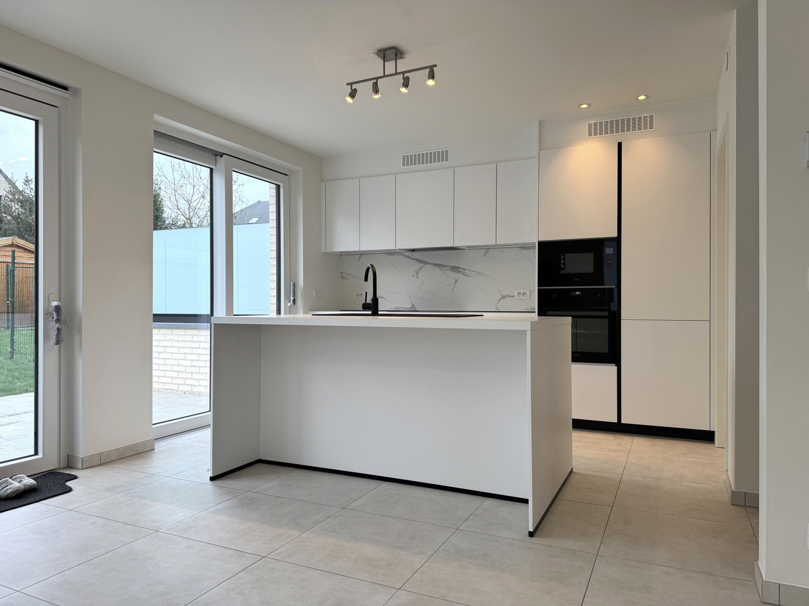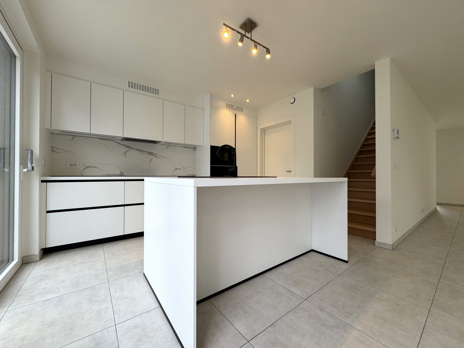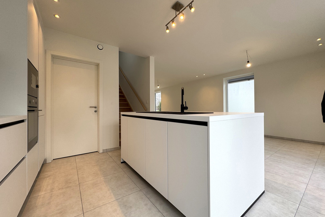 Deze recent gebouwde halfopen BEN woning biedt een combinatie van modern comfort, energiezuinigheid en een rustige ligging. De woning beschikt over een gedeelde externe garage waar plaats is voor één wagen en een ruime oprit die plaats biedt aan meerdere wagens. Achteraan bevindt zich een aangename tuin met een ruim terras, ideaal om in alle rust te ontspannen. Op het gelijkvloers omvat de woning een inkomhal met apart toilet, gevolgd door een zeer ruime en lichtrijke leefruimte die in twee delen is ingedeeld. De open, volledig geïnstalleerde keuken is uitgerust met alle moderne toestellen en sluit naadloos aan op de leefruimte. Aansluitend bevindt zich een grote berging met aansluiting voor wasmachine en droogkast en extra stockageruimte. Op de eerste verdieping zijn er drie volwaardige slaapkamers, een badkamer voorzien van inloopdouche met regendouche, ligbad en dubbele lavabo, en een apart toilet op de nachthal. De woning is uitgerust met zonnepanelen (5000 Wp) en wordt verwarmd via een lucht/water warmtepomp met vloerverwarming en warmwater boiler, wat zorgt voor een zeer energiezuinig wooncomfort. Via de warmtepomp kan men ook koelen in de zomermaanden. Tenslotte is er een ventilatiesysteem van Renson aanwezig. De huurprijs: 1400 EUR/maand, beschikbaar vanaf 01/02/2026.