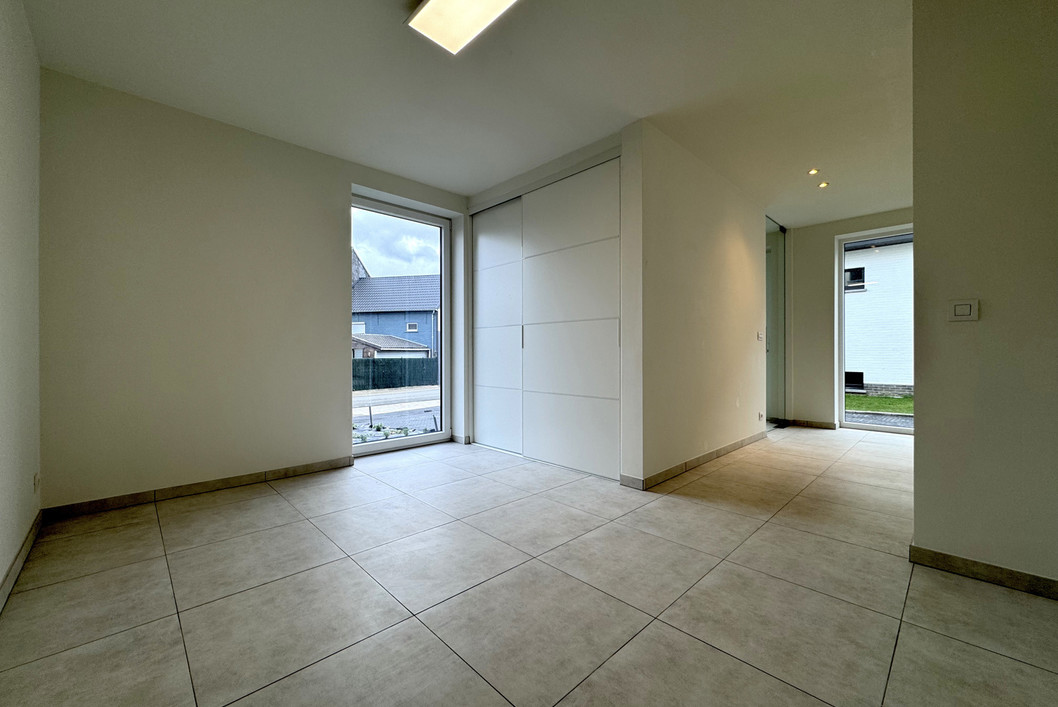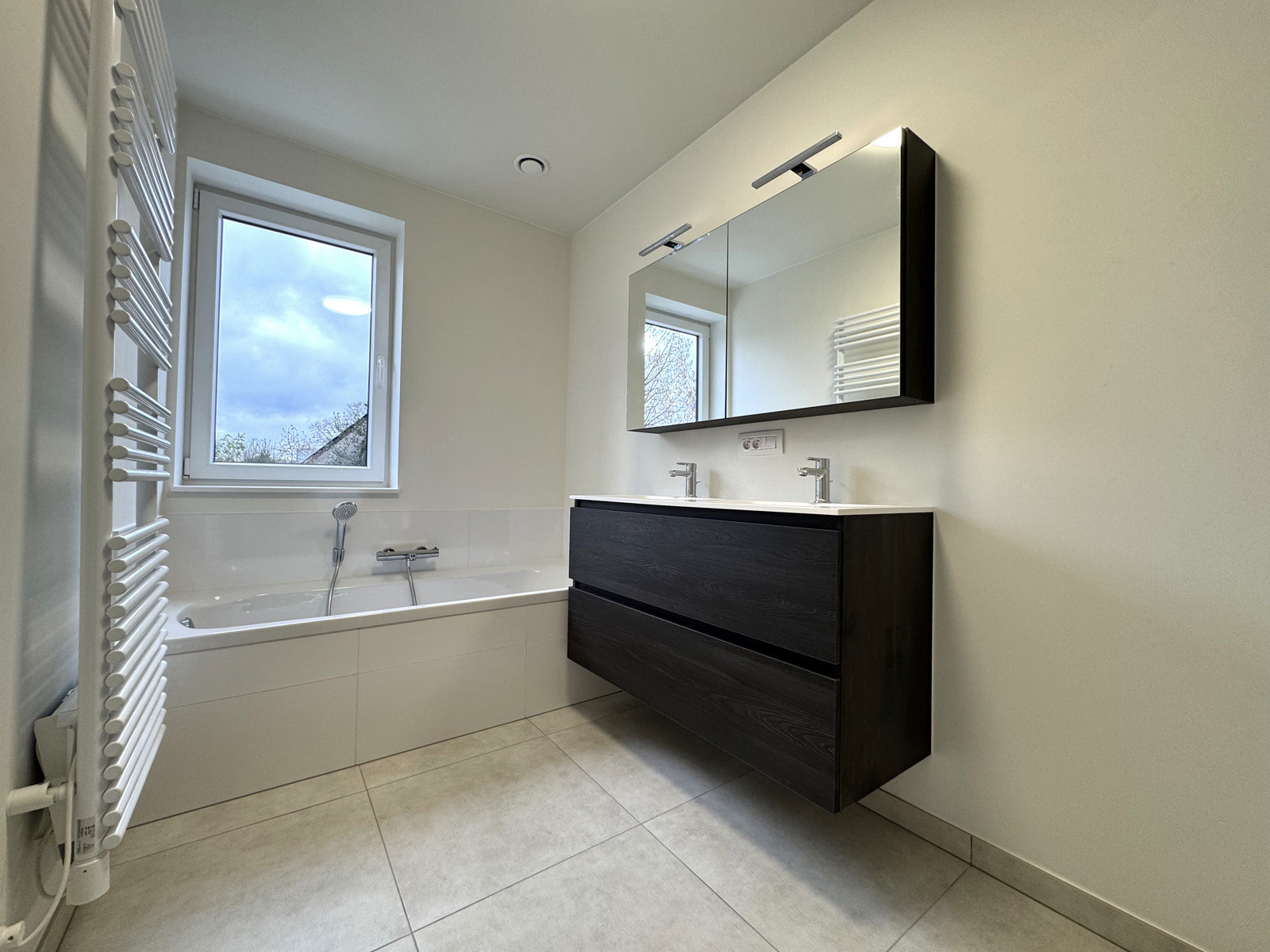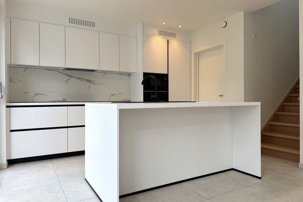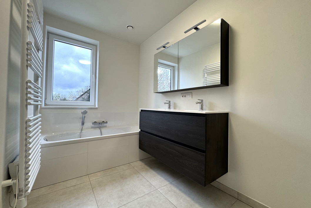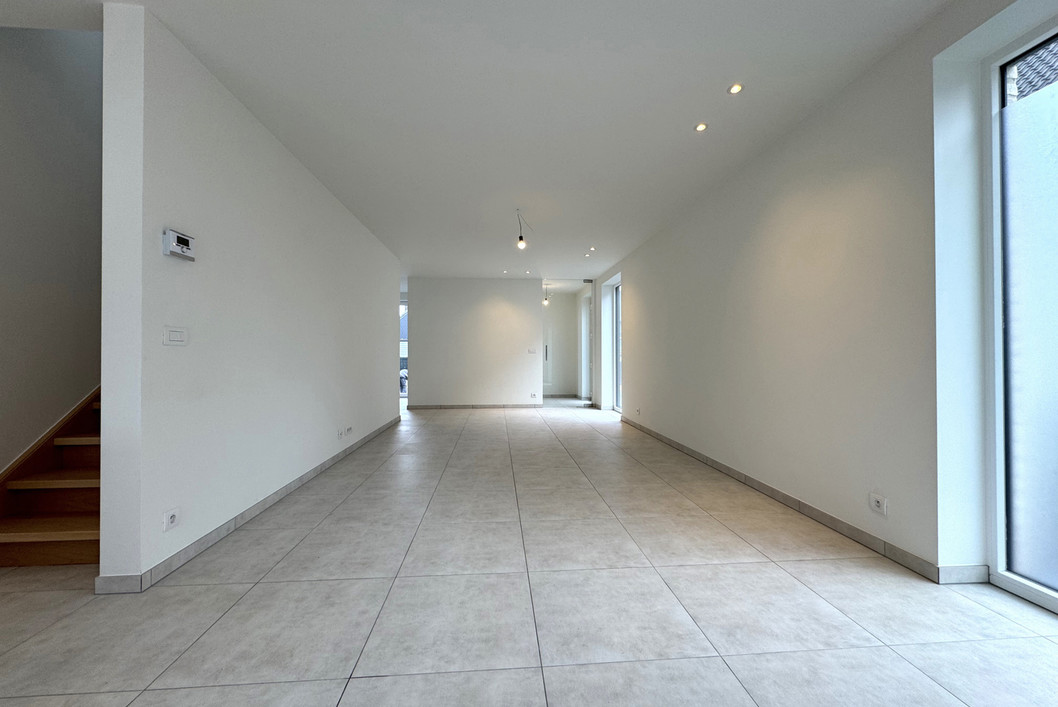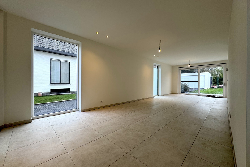 Deze recent gebouwde halfopen BEN woning biedt een combinatie van modern comfort, energiezuinigheid en een rustige ligging. De woning beschikt over een gedeelde externe garage waar plaats is voor één wagen en een ruime oprit die plaats biedt aan meerdere wagens. Achteraan bevindt zich een aangename tuin met een ruim terras, ideaal om in alle rust te ontspannen. Op het gelijkvloers omvat de woning een inkomhal met apart toilet, gevolgd door een zeer ruime en lichtrijke leefruimte die in twee delen is ingedeeld. De open, volledig geïnstalleerde keuken is uitgerust met alle moderne toestellen en sluit naadloos aan op de leefruimte. Aansluitend bevindt zich een grote berging met aansluiting voor wasmachine en droogkast en extra stockageruimte. Op de eerste verdieping zijn er drie volwaardige slaapkamers, een badkamer voorzien van inloopdouche met regendouche, ligbad en dubbele lavabo, en een apart toilet op de nachthal. De woning is uitgerust met zonnepanelen (5000 Wp) en wordt verwarmd via een lucht/water warmtepomp met vloerverwarming en warmwater boiler, wat zorgt voor een zeer energiezuinig wooncomfort. Via de warmtepomp kan men ook koelen in de zomermaanden. Tenslotte is er een ventilatiesysteem van Renson aanwezig. De huurprijs: 1400 EUR/maand, beschikbaar vanaf 01/02/2026.
