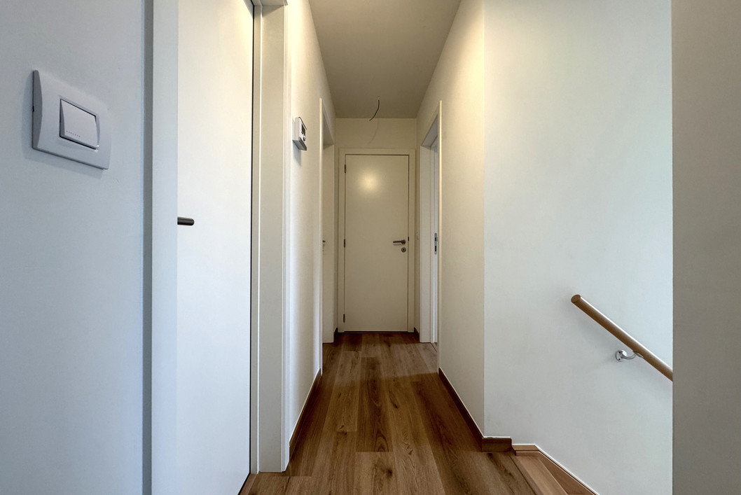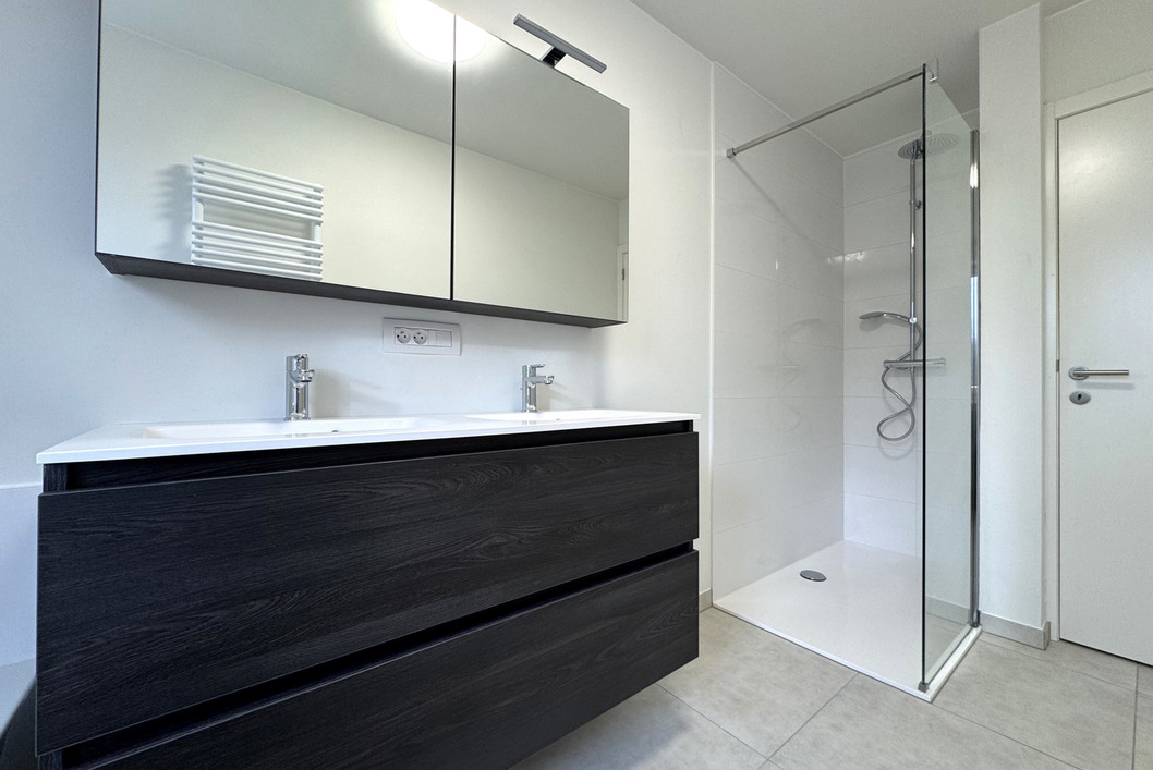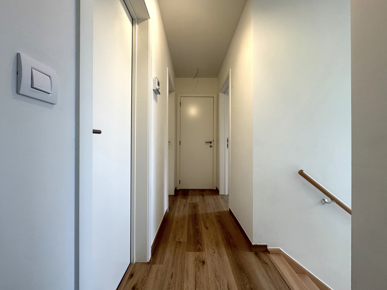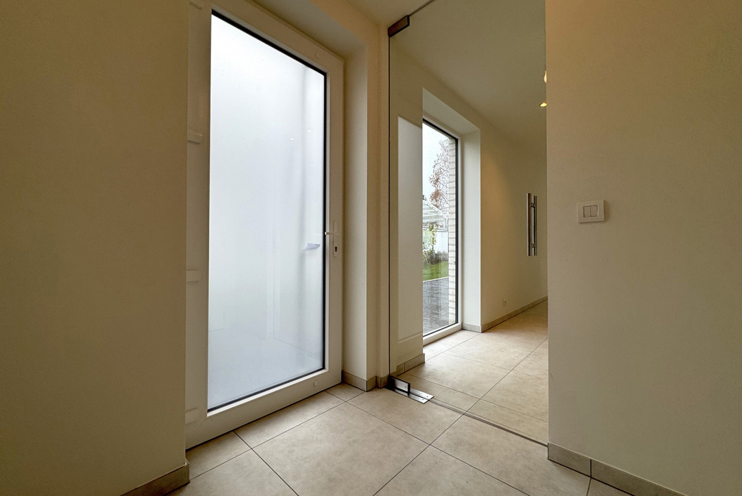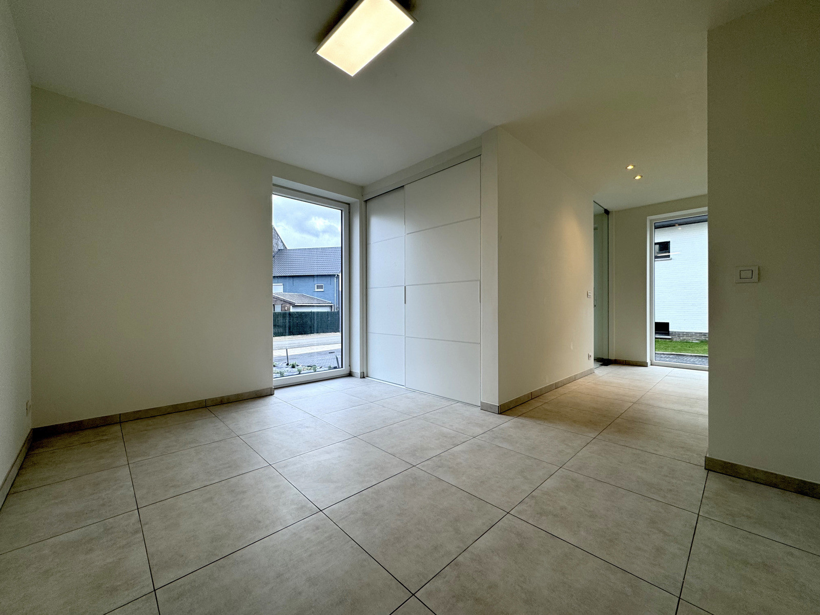 Deze recent gebouwde halfopen BEN woning biedt een combinatie van modern comfort, energiezuinigheid en een rustige ligging. De woning beschikt over een gedeelde externe garage waar plaats is voor één wagen en een ruime oprit die plaats biedt aan meerdere wagens. Achteraan bevindt zich een aangename tuin met een ruim terras, ideaal om in alle rust te ontspannen. Op het gelijkvloers omvat de woning een inkomhal met apart toilet, gevolgd door een zeer ruime en lichtrijke leefruimte die in twee delen is ingedeeld. De open, volledig geïnstalleerde keuken is uitgerust met alle moderne toestellen en sluit naadloos aan op de leefruimte. Aansluitend bevindt zich een grote berging met aansluiting voor wasmachine en droogkast en extra stockageruimte. Op de eerste verdieping zijn er drie volwaardige slaapkamers, een badkamer voorzien van inloopdouche met regendouche, ligbad en dubbele lavabo, en een apart toilet op de nachthal. De woning is uitgerust met zonnepanelen (5000 Wp) en wordt verwarmd via een lucht/water warmtepomp met vloerverwarming en warmwater boiler, wat zorgt voor een zeer energiezuinig wooncomfort. Via de warmtepomp kan men ook koelen in de zomermaanden. Tenslotte is er een ventilatiesysteem van Renson aanwezig. De huurprijs: 1400 EUR/maand, beschikbaar vanaf 01/02/2026.
