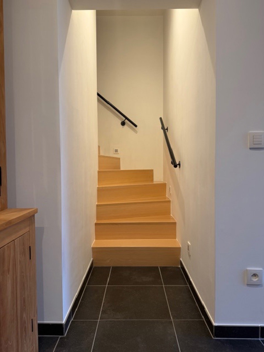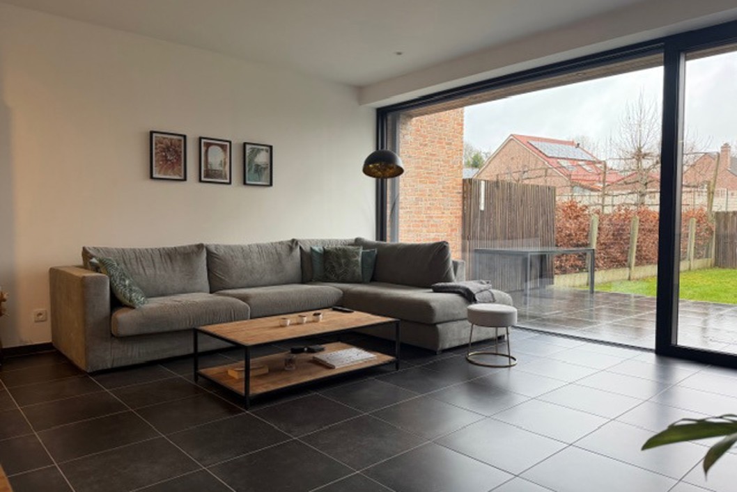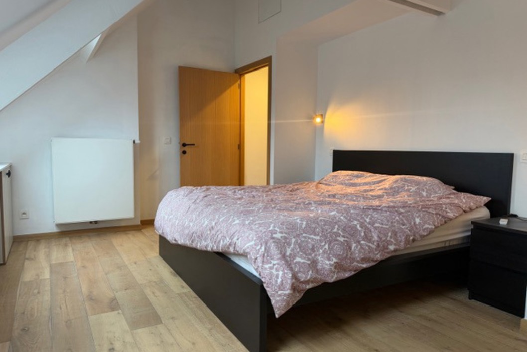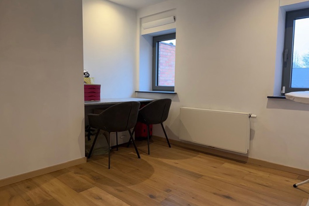 Verzorgde en energiezuinige woning met tuin.Op het gelijkvloers: inkomhal, apart toilet, garage, berging en een volledig ingerichte open keuken met zicht op de tuin.Op de eerste verdieping zijn er 2 ruime slaapkamers en een badkamer met douche en toilet. Op de bovenverdieping vind je nog een grote slaapkamer met airco en een tweede badkamer met ligbad, douche en toilet.Vloerverwarming aanwezig.