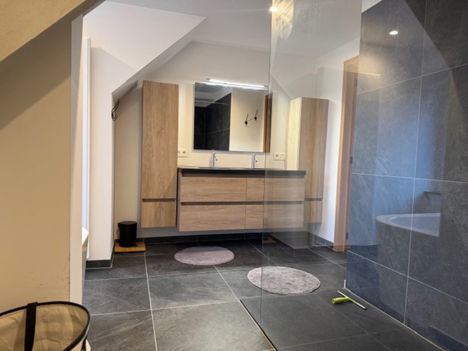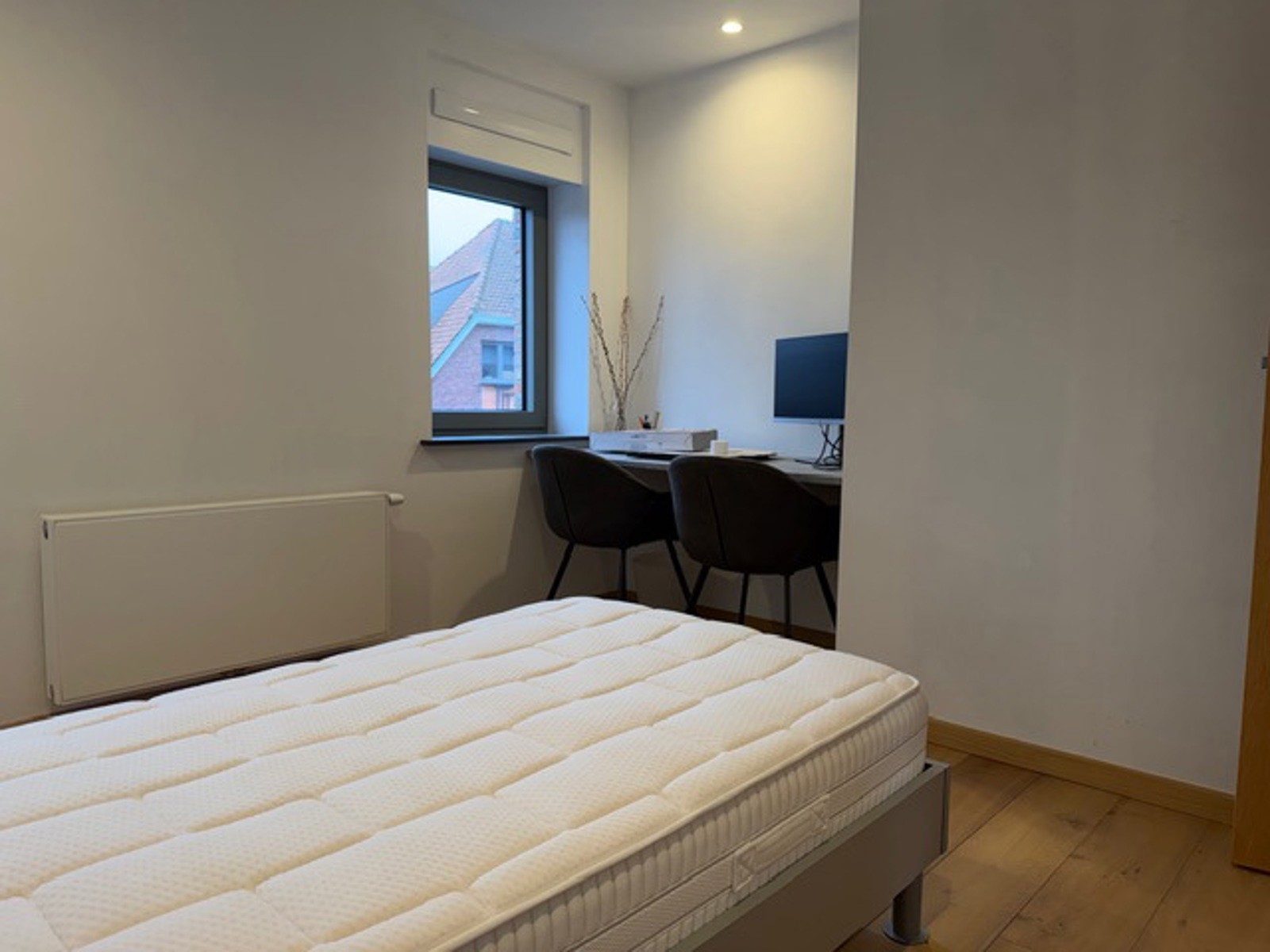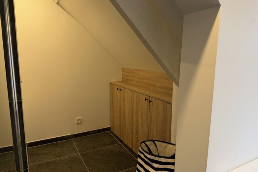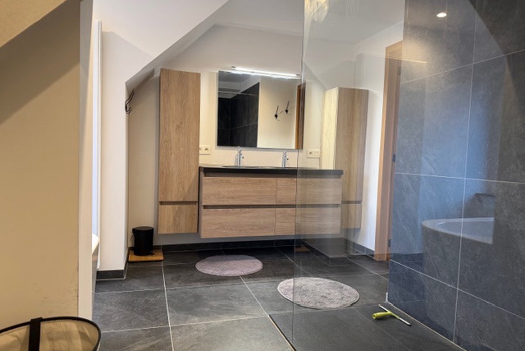 Verzorgde en energiezuinige woning met tuin.Op het gelijkvloers: inkomhal, apart toilet, garage, berging en een volledig ingerichte open keuken met zicht op de tuin.Op de eerste verdieping zijn er 2 ruime slaapkamers en een badkamer met douche en toilet. Op de bovenverdieping vind je nog een grote slaapkamer met airco en een tweede badkamer met ligbad, douche en toilet.Vloerverwarming aanwezig.