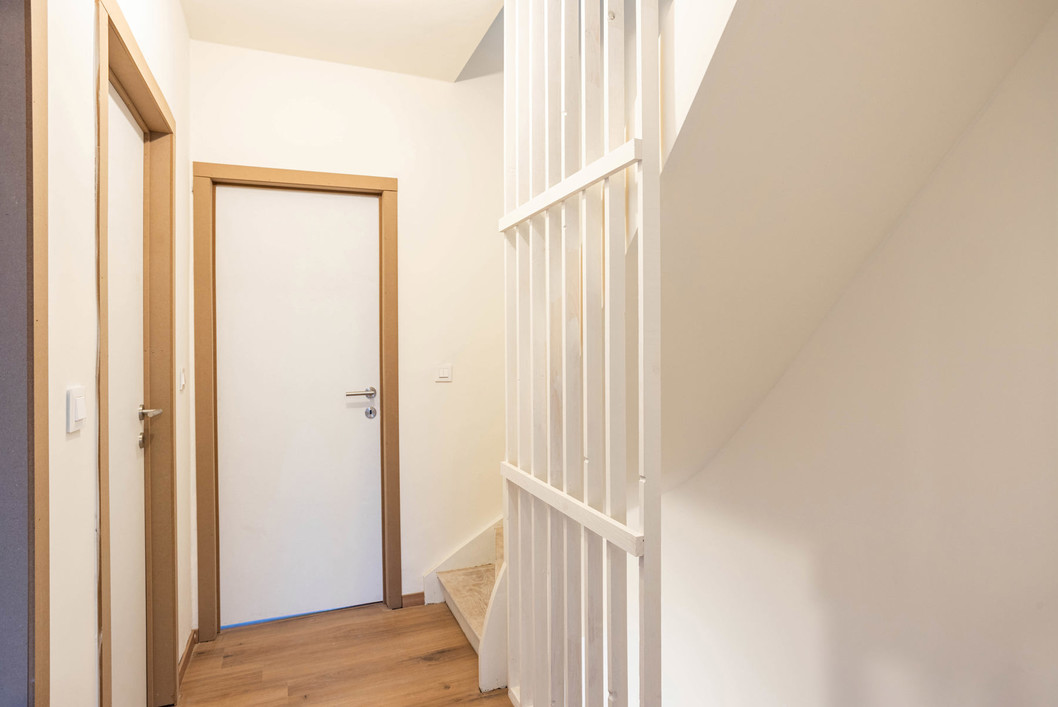 Een ruime inkomhal, apart toilet, een lichtrijke leefruimte met aansluitend de enorm ruime keuken ( KVIK, dampkap, combi-oven, inductiekookplaat en vaatwas BOSCH) en een berging. Op de eerste verdieping zijn er twee ruime slaapkamers, een bureel/dressingen een badkamer ( inloopdouche, toilet en dubbele wastafel). De zolderverdieping is bereikbaar via vaste trap en bestaat uit een erg grote derde slaapkamer ( mogelijks op te splitsen om vierde slaapkamer bij te maken). Buiten is er een stadstuin. Deze woning werd recent totaal gerenoveerd ( alle attesten conform) en geschilderd waardoor deze instapklaar is in de werkelijke zin van het woord, u hoeft enkel te in te trekken! Centraal gelegen op wandelafstand van het centrum, station, winkels en openbaar vervoer. Voor de snelle beslisser!