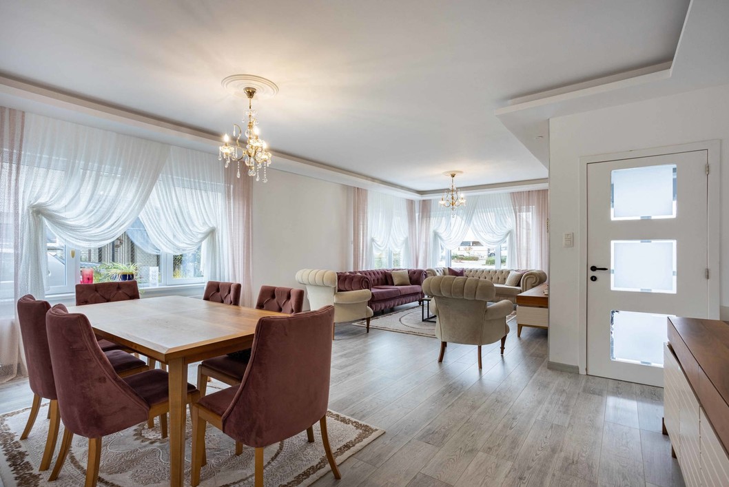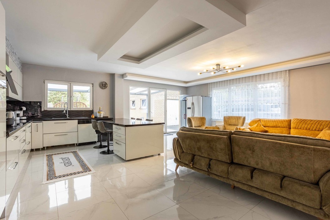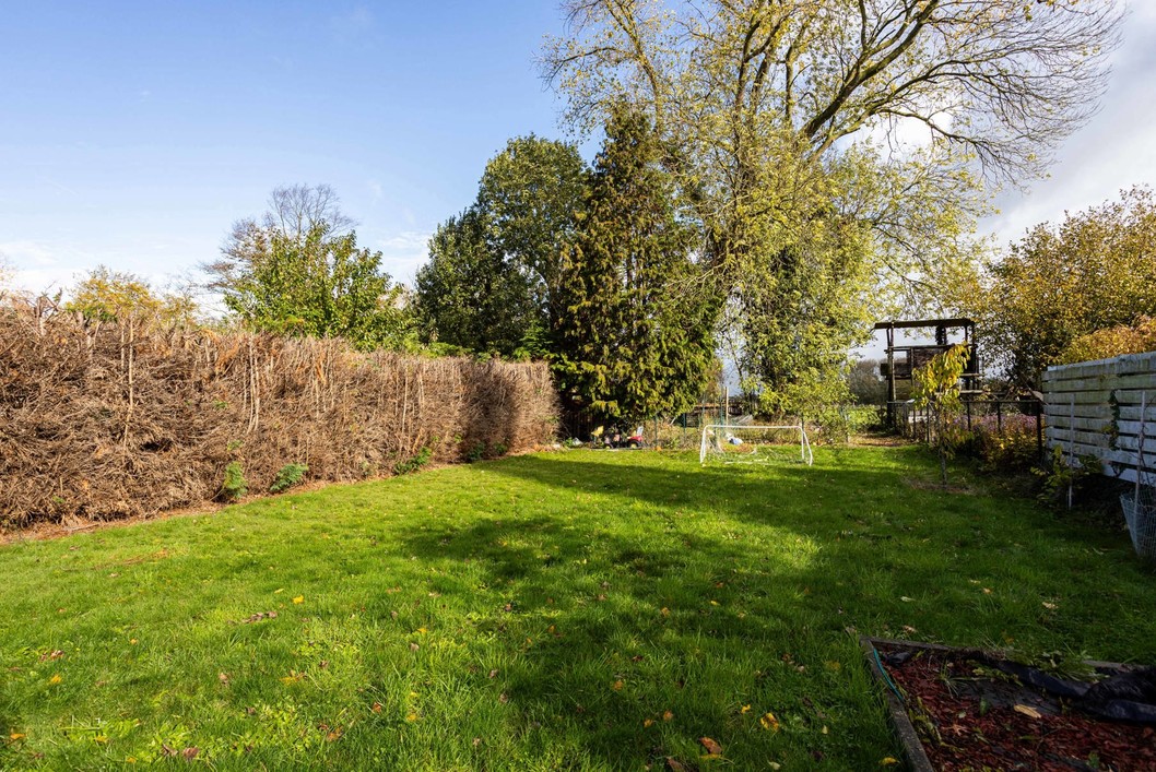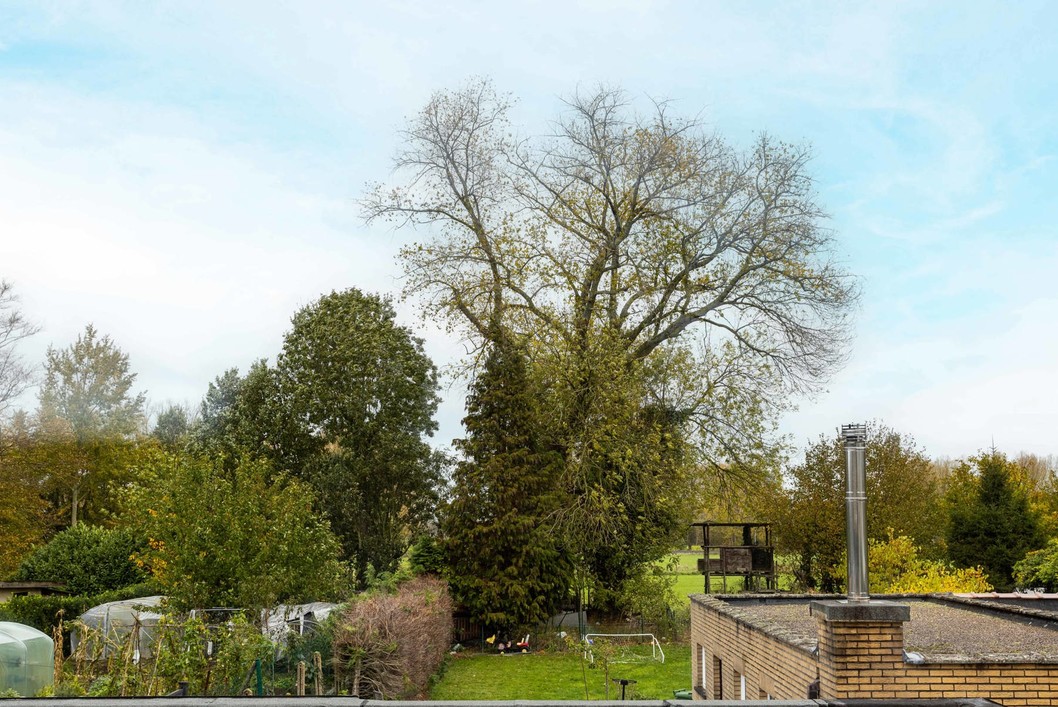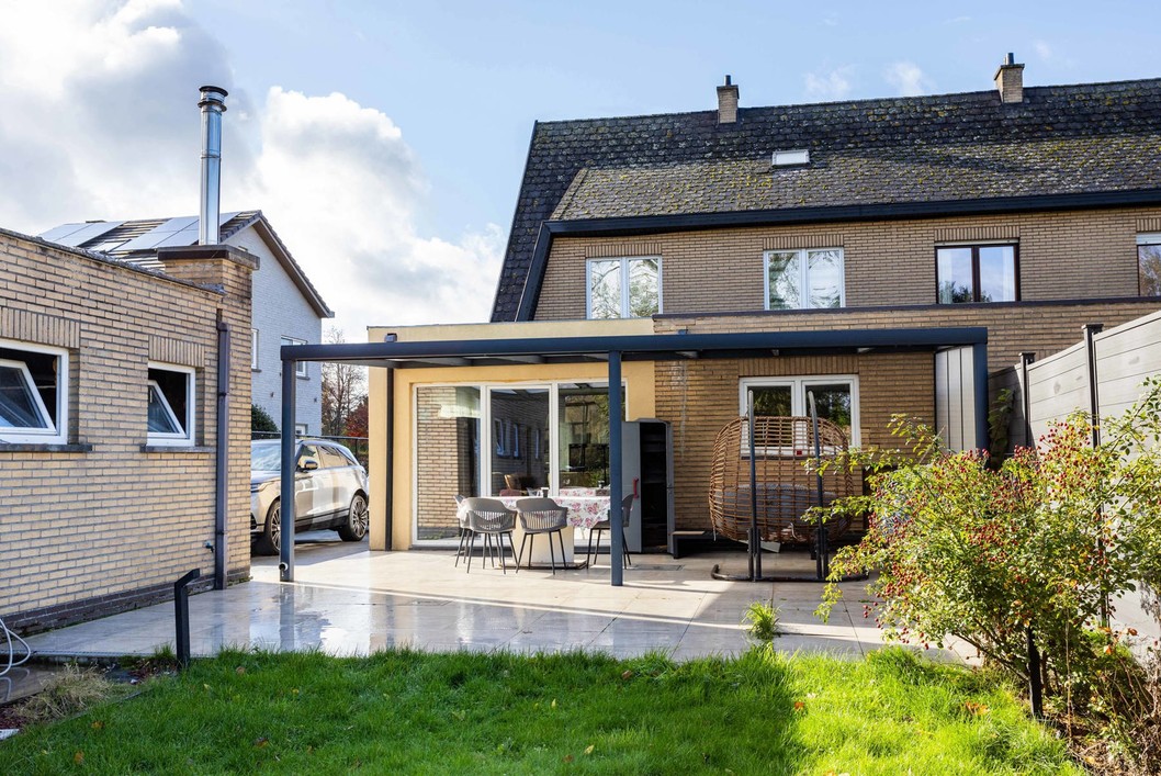 Deze indrukwekkende woning heeft een royale bewoonbare oppervlakte van 222 m², wat ze tot een ideale keuze maakt voor gezinnen die op zoek zijn naar een comfortabele thuis dicht bij alle voorzieningen en stadsfaciliteiten maar toch in een groene omgeving. Deze stijlvolle halfopen gezinswoning verwelkomt je in een lichtrijke leefruimte met een open indeling die het natuurlijke licht versterkt en een warme, uitnodigende sfeer creëert. De moderne keuken is volledig uitgerust met kwalitatieve inbouwtoestellen en biedt ruime werkoppervlakken en handige opbergmogelijkheden. Op het gelijkvloers bevindt zich bovendien een gezellige zithoek, perfect om te ontspannen of gasten te ontvangen. Op de eerste verdieping vind je drie lichtrijke, comfortabele, slaapkamers en een strakke badkamer met inloopdouche, volledig afgestemd op de noden van een gezin. De ruime zolderverdieping biedt extra mogelijkheden als polyvalente ruimte of bijkomende slaapkamer — zo kan de ruimte flexibel worden ingevuld naar wens. Buiten geniet je van een aangelegde tuin met overdekt terras. De tuin geeft uit op agrarisch gebied, dit garandeert een eeuwige kijk op de achterliggende groene omgeving. Bovenop de oprit beschikt deze woning over een garage, geschikt voor twee wagens.