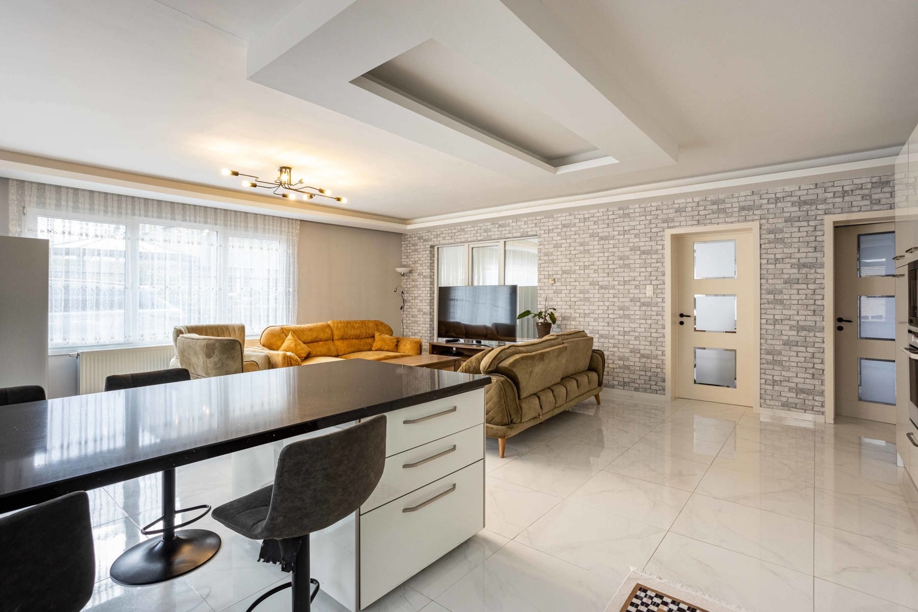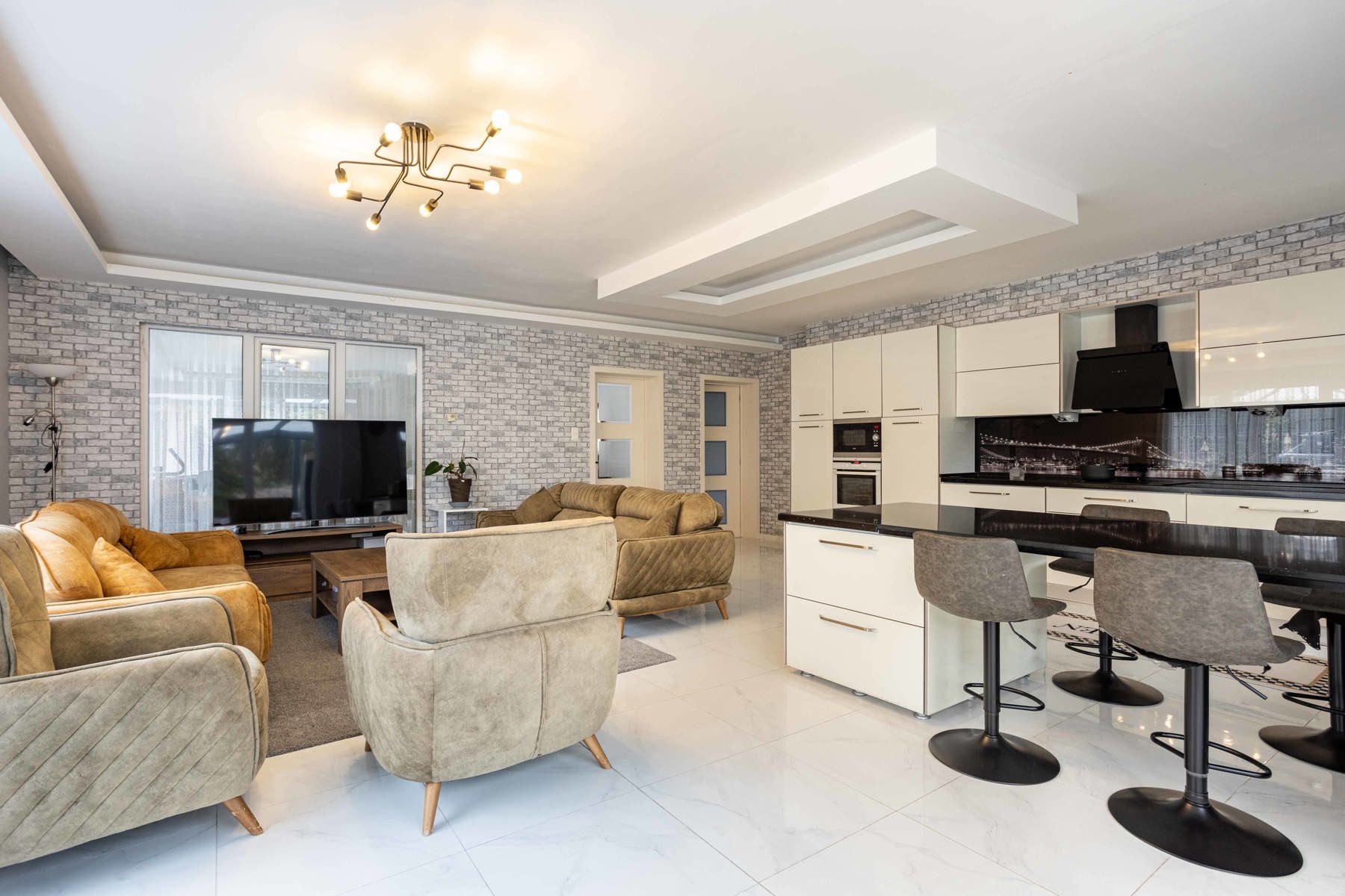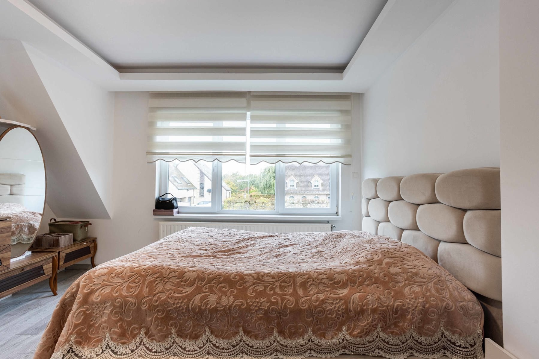 Deze indrukwekkende woning heeft een royale bewoonbare oppervlakte van 222 m², wat ze tot een ideale keuze maakt voor gezinnen die op zoek zijn naar een comfortabele thuis dicht bij alle voorzieningen en stadsfaciliteiten maar toch in een groene omgeving. Deze stijlvolle halfopen gezinswoning verwelkomt je in een lichtrijke leefruimte met een open indeling die het natuurlijke licht versterkt en een warme, uitnodigende sfeer creëert. De moderne keuken is volledig uitgerust met kwalitatieve inbouwtoestellen en biedt ruime werkoppervlakken en handige opbergmogelijkheden. Op het gelijkvloers bevindt zich bovendien een gezellige zithoek, perfect om te ontspannen of gasten te ontvangen. Op de eerste verdieping vind je drie lichtrijke, comfortabele, slaapkamers en een strakke badkamer met inloopdouche, volledig afgestemd op de noden van een gezin. De ruime zolderverdieping biedt extra mogelijkheden als polyvalente ruimte of bijkomende slaapkamer — zo kan de ruimte flexibel worden ingevuld naar wens. Buiten geniet je van een aangelegde tuin met overdekt terras. De tuin geeft uit op agrarisch gebied, dit garandeert een eeuwige kijk op de achterliggende groene omgeving. Bovenop de oprit beschikt deze woning over een garage, geschikt voor twee wagens.