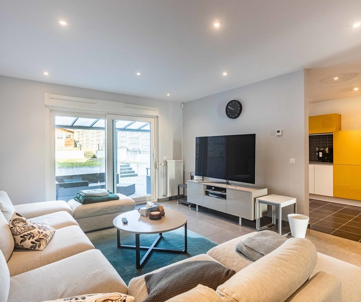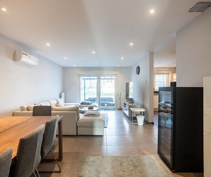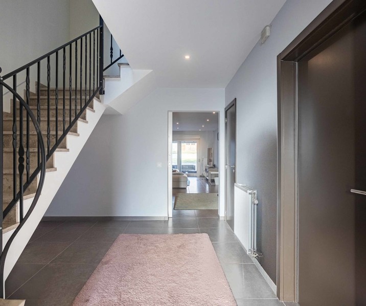 Deze instapklare woning uit bouwjaar 2017 bestaat op het gelijkvloers uit een grote inkomhal met vestiaire, apart toilet, een eerste slaapkamer/bureau met aansluitend de eerste badkamer( douche, wastafel, toilet), een ruime leefruimte met eethoek en salon, volledig geïnstalleerde keuken met aansluitend de berging/wasplaats. De eerste verdieping bestaat op haar beurt uit een nachthal, nog 3 ruime kamers waarvan momenteel één ingericht als dressing en een tweede en derde badkamer ( telkens met douche, toilet en wastafel). De zolderverdieping is bereikbaar via vaste trap en omvat nog een hal, een vijfde slaapkamer en een berging. Centrale verwarming op gas en airco overal! Buiten is er een terras met zonneluifel, een tuin en een tuinberging. Zoekt u een perfect onderhouden, recent pand met enorm veel aandacht voor comfort dan is dit dé kans om uw droom te verwezenlijken. EPC label B!
