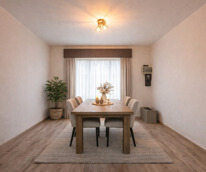 Deze deels gerenoveerde halfopen bebouwing bevindt zich in een zeer rustige straat. Je komt binnen in de aparte inkomhal die toegang geeft tot de ruime woonkamer (30,5 m²). Verder op het gelijkvloers vind je een nieuwe, volledig geïnstalleerde keuken en een badkamer voorzien van een inloopdouche. Op de eerste verdieping zijn er twee ruime slaapkamers en een kleinere derde kamer. Via een vaste trap bereik je de recent geïsoleerde zolder. De woning beschikt ook nog over een droge kelder, een ruime garage, een groot terras en een aangename tuin. Wat werd al gerenoveerd in deze woning? Een nieuw dak op de achterbouw, een nieuwe keuken, een nieuwe badkamer, nieuwe vloerbekleding op de benedenverdieping, een geïsoleerde zolder en deels nieuwe ramen. Je kan deze woning dus nog verder vernieuwen naar jouw eigen wensen! Op wandelafstand bevinden zich het station van Burst, scholen en openbaar vervoer. De E40 ligt op 5 min rijden.