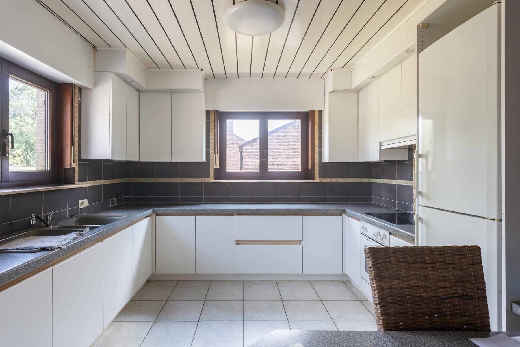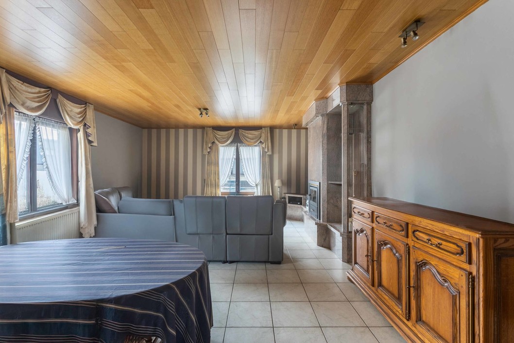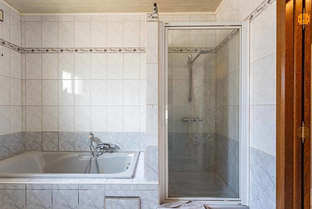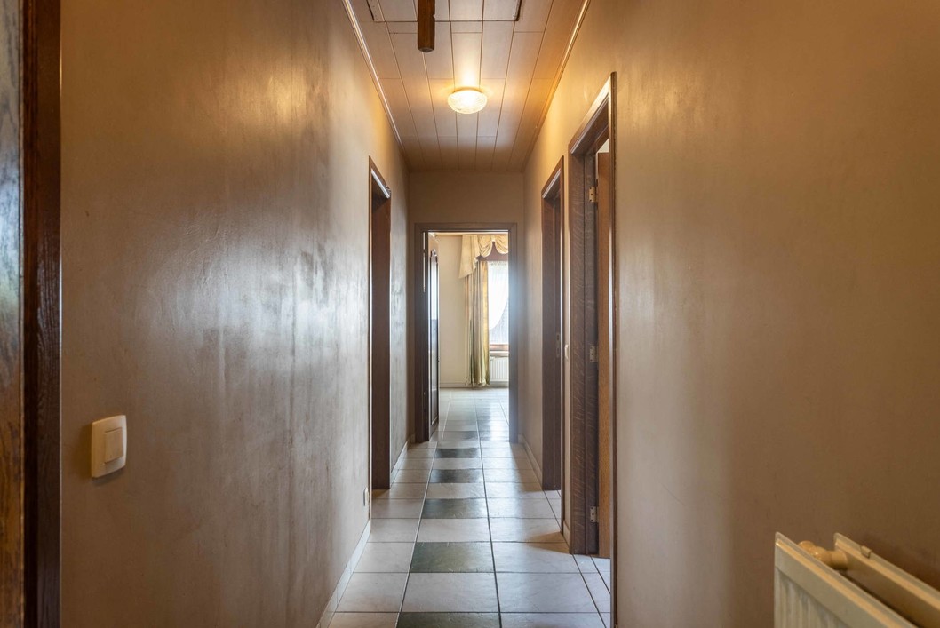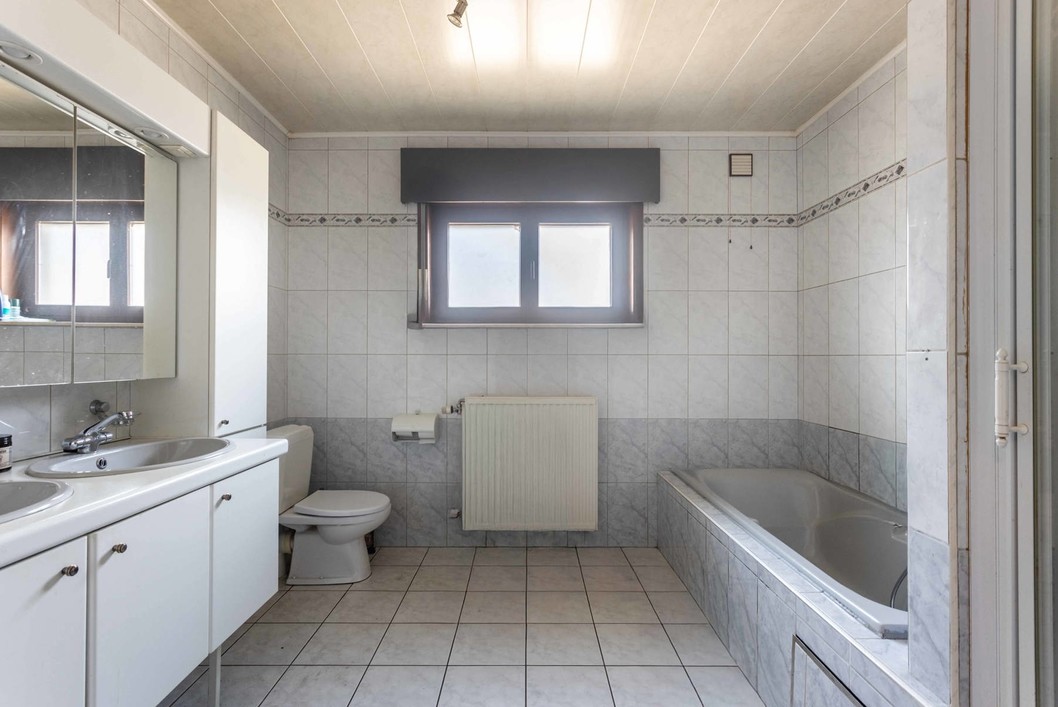 Deze ruime villa bestaat op het gelijkvloers uit een inkomhal, apart toilet, een ruime leefruimte, 3 slaapkamers, hal, badkamer (ligbad, toilet, douche en dubbele wastafel), technische ruimte en een keuken. De verdieping is bereikbaar via schuiftrap en is momenteel ingericht als 1 grote hobbyruimte. Buiten is er een leuke tuin en een grote garage ( 40m2) met opbergzolder. Dit pand heeft energielabel B, overal dubbele beglazing en rolluiken. Ideaal gelegen in een rustige straat, nabij winkels/scholen/aansluiting E40 en station.