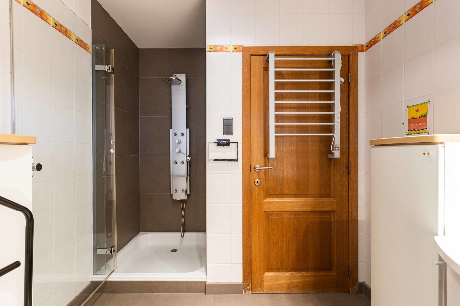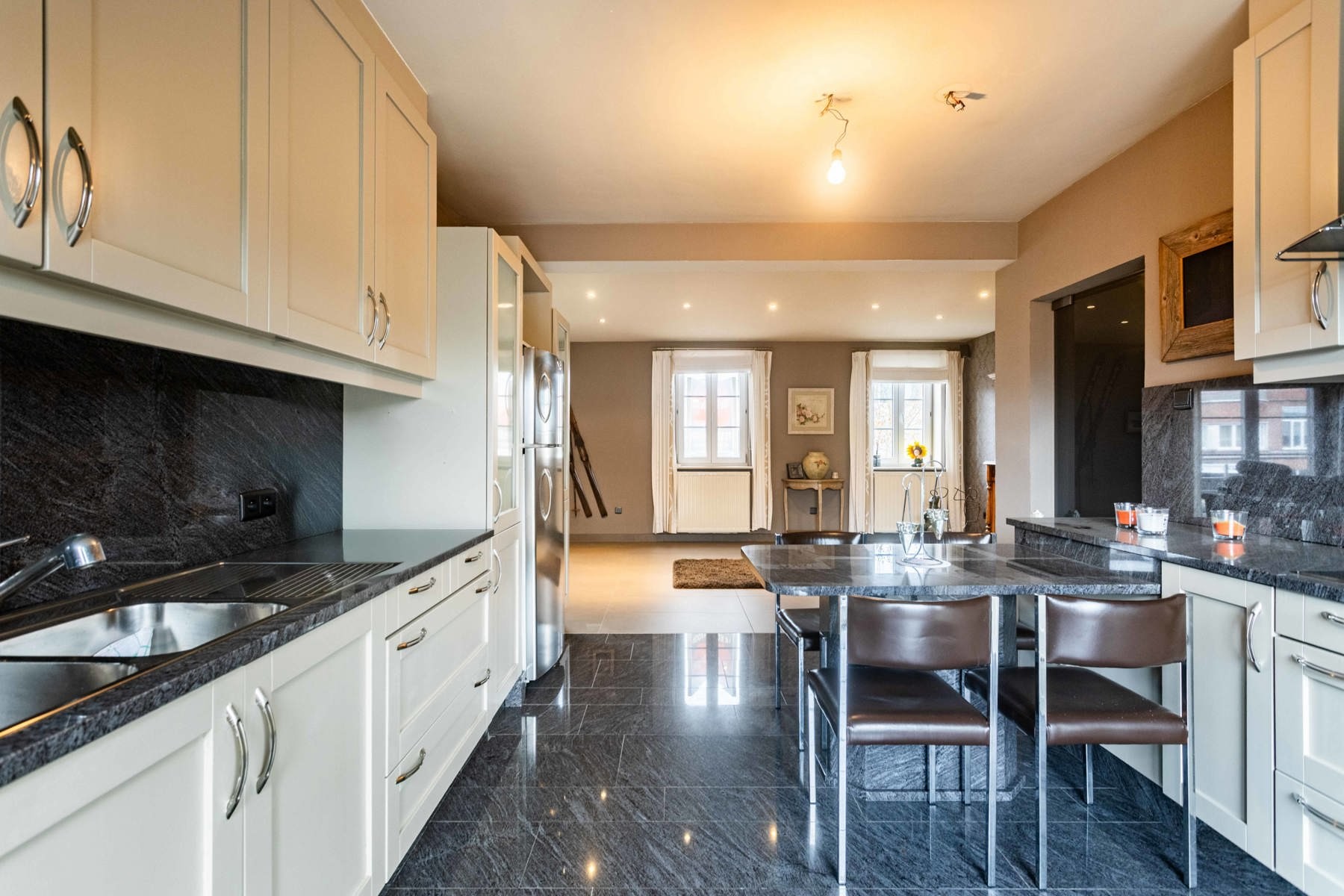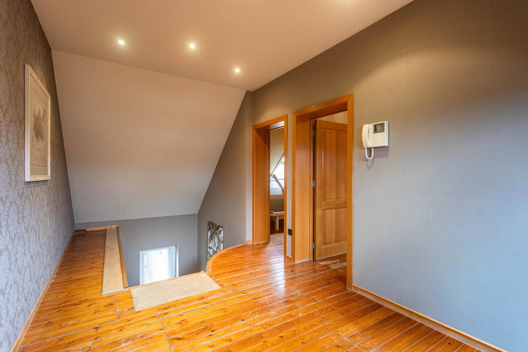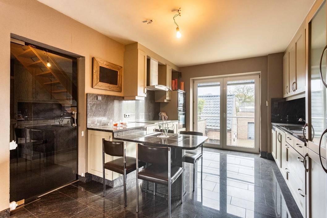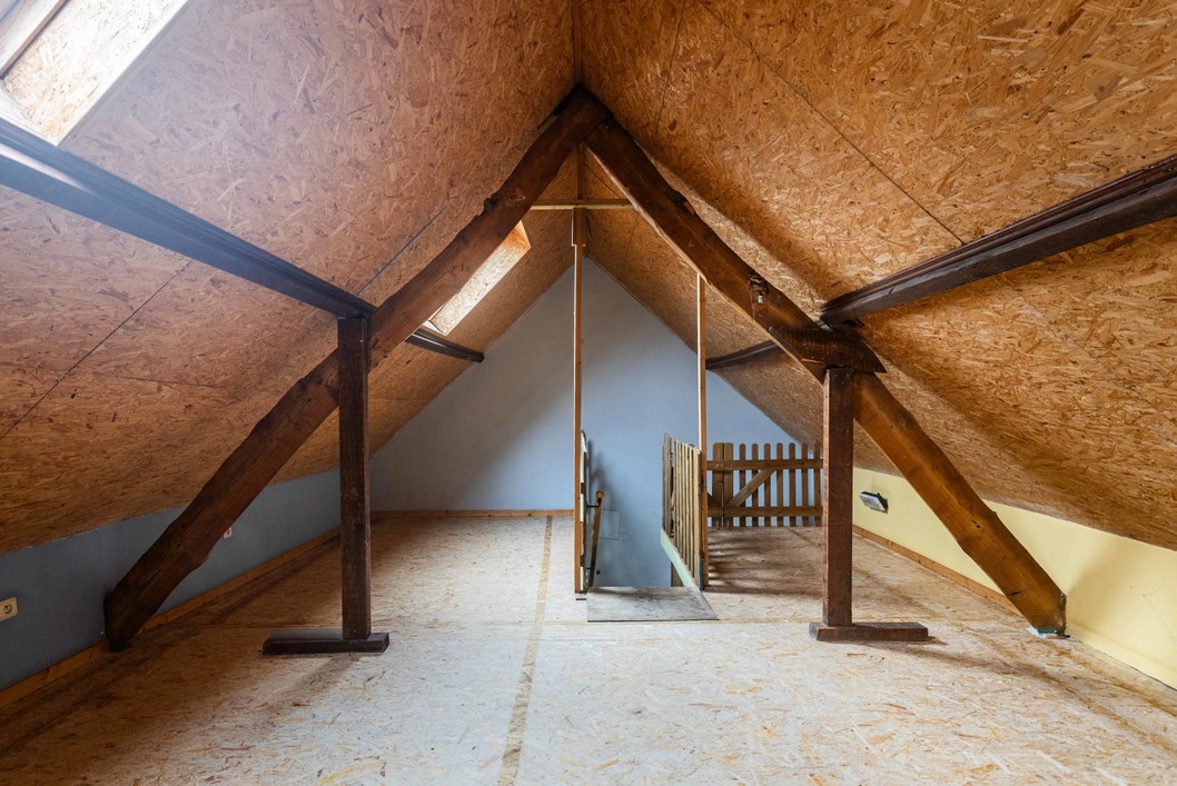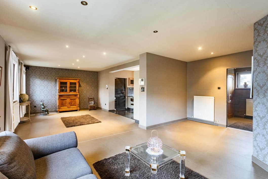 Boven de doorgang bevindt zich een duplex appartement van 205 m². Dit appartement omvat een inkomhal met apart toilet, een ruime leefruimte met eetplaats en open keuken, en toegang tot een aangenaam terras. Verder is er een slaapkamer, een badkamer met douche en toilet, en een praktische wasplaats. Op de bovenverdieping bevinden zich nog drie volwaardige slaapkamers en een zolderruimte. Op het gelijkvloers bevindt zich een voormalige kinderopvang met een royale oppervlakte van 191 m². De huidige indeling bestaat uit valse wanden, wat betekent dat deze ruimte volledig naar eigen wens kan worden heringericht. Dit maakt het perfect geschikt voor wie op zoek is naar een praktijkruimte, atelier, extra woonruimte of een tweede wooneenheid. Langs de zijkant van het gebouw is er een doorgang die leidt naar een ruime binnenplaats, een garage en een loods van maar liefst 170 m². Achter de loods bevindt zich een grote, zonnige tuin. Dankzij de combinatie van een grote polyvalente ruimte op het gelijkvloers, een afzonderlijk duplex appartement, een ruime loods en een diepe tuin, biedt deze eigendom een uitstekende kans om twee volwaardige woonentiteiten te creëren – ideaal voor co-housing, kangoeroewonen of een combinatie van wonen en werken.