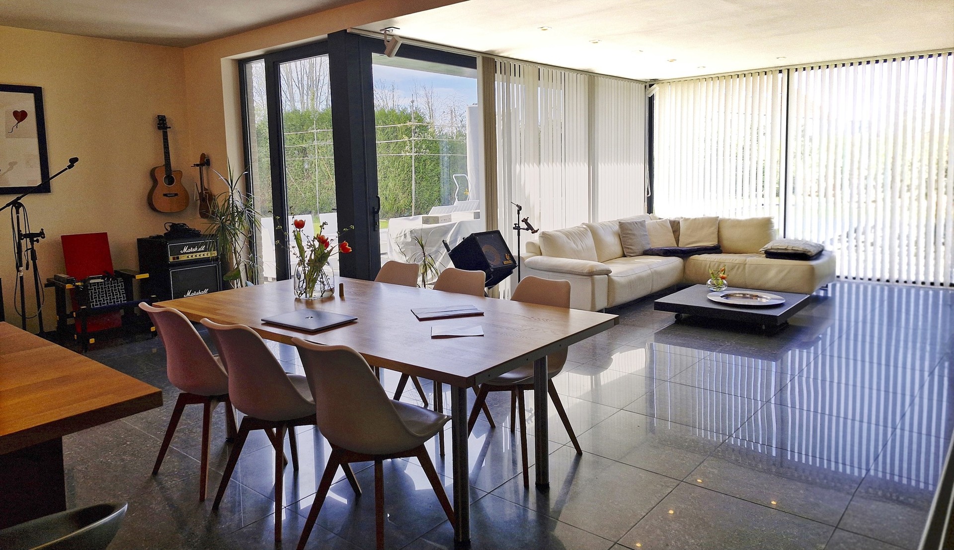 Deze instapklare woning is gelegen in een verkeersluwe straat te Lede en bestaat op het gelijkvloers uit een inkomhal, apart toilet, bureau, een ruime en lichtrijke leefruimte ( met hoogrendements-gashaard), aansluitend de open keuken, berging en een inpandige garage. Ondergronds is er een droge kelder. De verdieping omvat op haar beurt een nachthal, een eerste badkamer ( dubbele wastafel, inloopdouche, toilet), 3 ruime slaapkamers ( waarvan de master bedroom een mooi zicht heeft op de achterliggende tuin), een bureel/4de slaapkamer en een tweede badkamer ( met douche, wastafel en toilet). Buiten is er parkeergelegenheid voor meerdere wagens, een afgesloten carport en een prachtige aangelegde tuin met zwemvijver en tuinberging. EPC score B oa dankzij hoogrendementsketel ( 2024) en superisolerende beglazing. Electriciteit conform! Goed gelegen aan het station en een vlotte bereikbaarheid naar de autosnelweg. Deze luxueuze woning vinkt uw volledig verlanglijstje af!