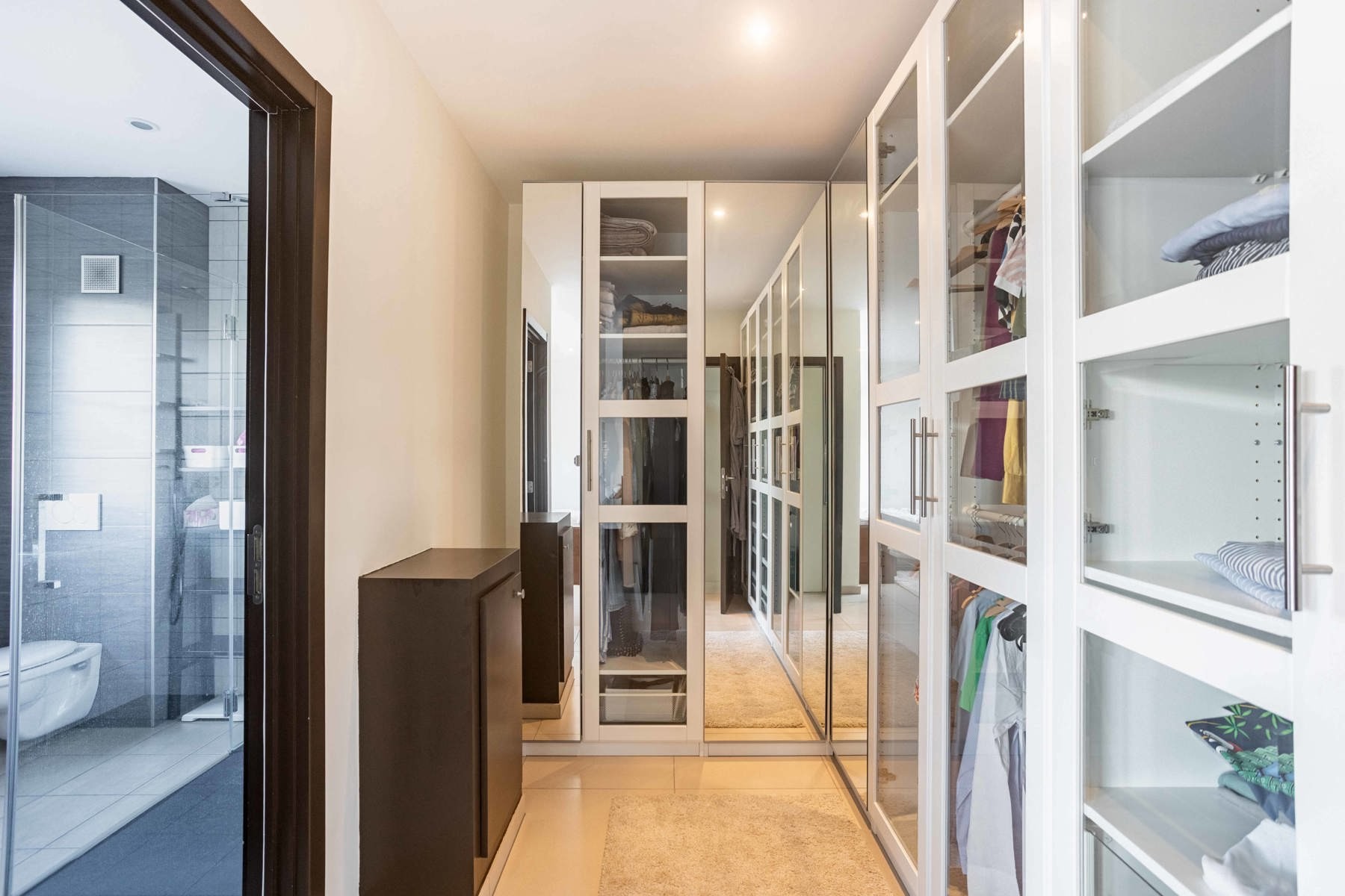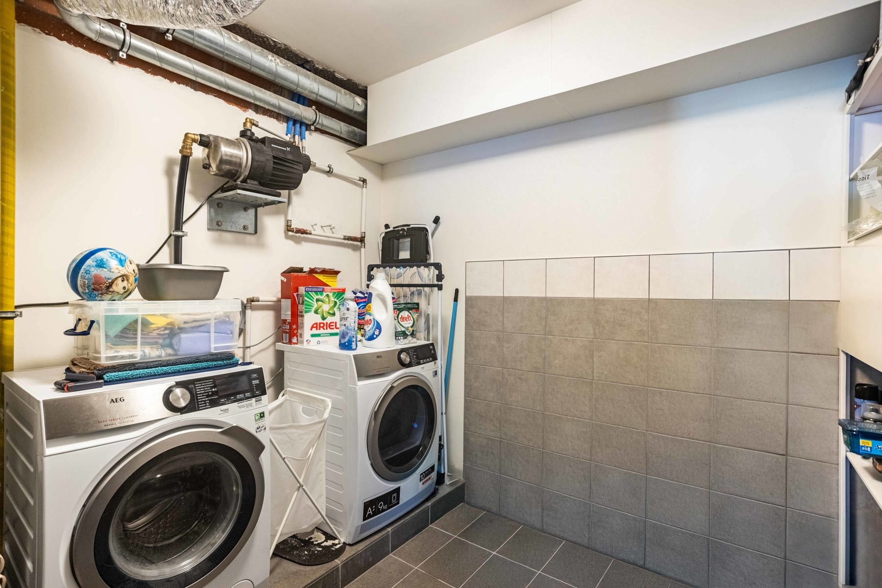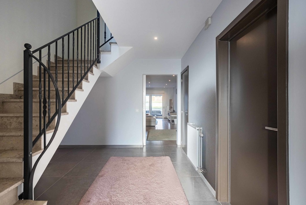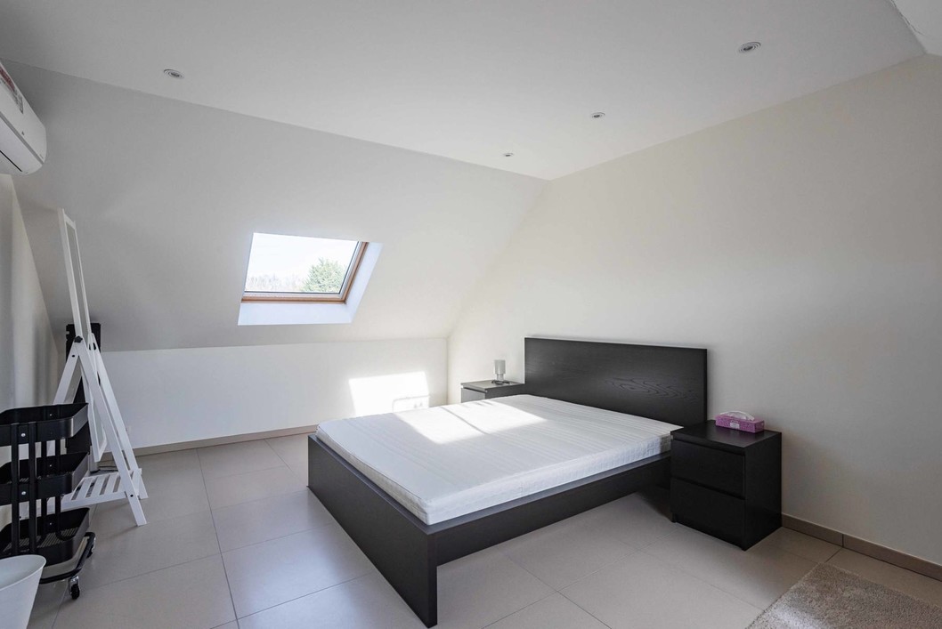 Deze instapklare woning uit bouwjaar 2017 bestaat op het gelijkvloers uit een grote inkomhal met vestiaire, apart toilet, een eerste slaapkamer/bureau met aansluitend de eerste badkamer( douche, wastafel, toilet), een ruime leefruimte met eethoek en salon, volledig geïnstalleerde keuken met aansluitend de berging/wasplaats. De eerste verdieping bestaat op haar beurt uit een nachthal, nog 3 ruime kamers waarvan momenteel één ingericht als dressing en een tweede en derde badkamer ( telkens met douche, toilet en wastafel). De zolderverdieping is bereikbaar via vaste trap en omvat nog een hal, een vijfde slaapkamer en een berging. Centrale verwarming op gas en airco overal! Buiten is er een terras met zonneluifel, een tuin en een tuinberging. Zoekt u een perfect onderhouden, recent pand met enorm veel aandacht voor comfort dan is dit dé kans om uw droom te verwezenlijken. EPC label B!