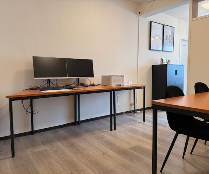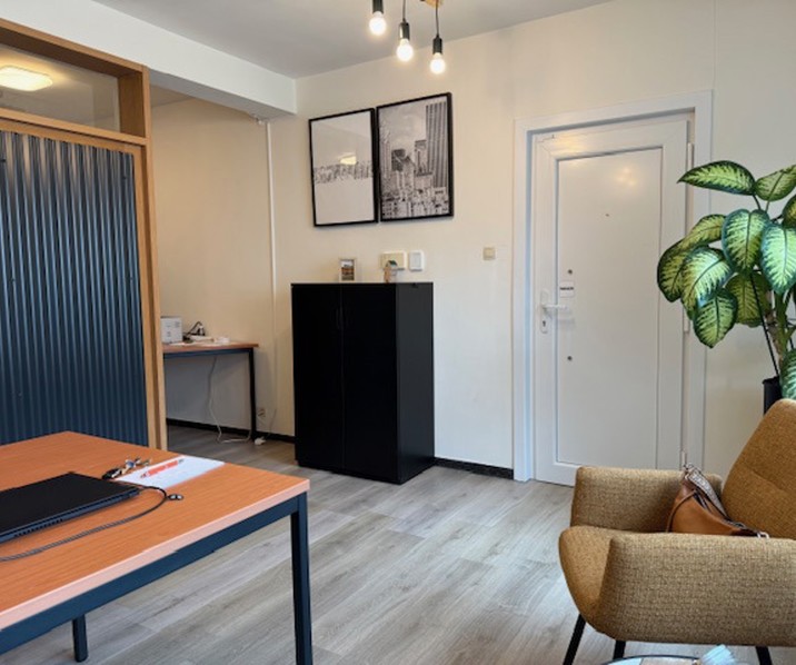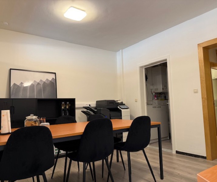 Deze gunstig gelegen kantoorruimte is momenteel opgedeeld in 3 aparte delen en biedt tal van mogelijkheden. Alle voorzieningen zijn aanwezig, uitgeruste keuken (muv frigo) ,toilet en garage. Deze biedt de mogelijkheid aan 2 à 3 wagens om te parkeren. Het kantoor heeft dubbel glas en wordt verwarmd door centrale verwarming op aardgas.
