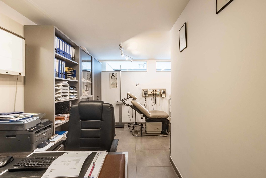 Recente en energiezuinige gelijkvloerse kantoor- of praktijkruimte op topligging nabij station Denderleeuw. Dit gelijkvloerse kantoor- of praktijkruimte is ideaal gelegen vlakbij het station van Denderleeuw, met alle voorzieningen op wandelafstand en op slechts enkele minuten van de E40. Het pand maakt deel uit van een modern gebouw uit 2019 en verkeert in uitstekende staat. Momenteel wordt het gebruikt als dokterspraktijk, maar dankzij de flexibele indeling leent het zich perfect voor andere vrije beroepen, kantoorfuncties of een gedeelde praktijkruimte. De ruimte omvat een inkom met wachtzaal en toilet, drie afzonderlijke beroepsruimtes, een volledig ingerichte keuken, een ruime leefruimte, een slaapkamer met aansluitende badkamer, een apart toilet, een praktische bergruimte en een aangenaam terras met zicht op de binnentuin. Daarnaast beschikt het pand over drie ondergrondse autostaanplaatsen, wat een absolute meerwaarde vormt voor zowel eigenaar als bezoekers/cliënten. De huidige arts beschikt over een bestaand patiëntenbestand van circa 5.000 patiënten. De mogelijkheden tot overdracht of verdere opvolging kunnen in overleg besproken worden. Dankzij de recente bouw, energiezuinigheid en de uitstekende bereikbaarheid combineert deze eigendom optimaal comfort met een strategische ligging, wat ze bijzonder interessant maakt voor wie op zoek is naar een moderne en instapklare werkruimte in Denderleeuw. Contacteer Verrassend Vastgoed voor meer informatie en/of een bezoek.