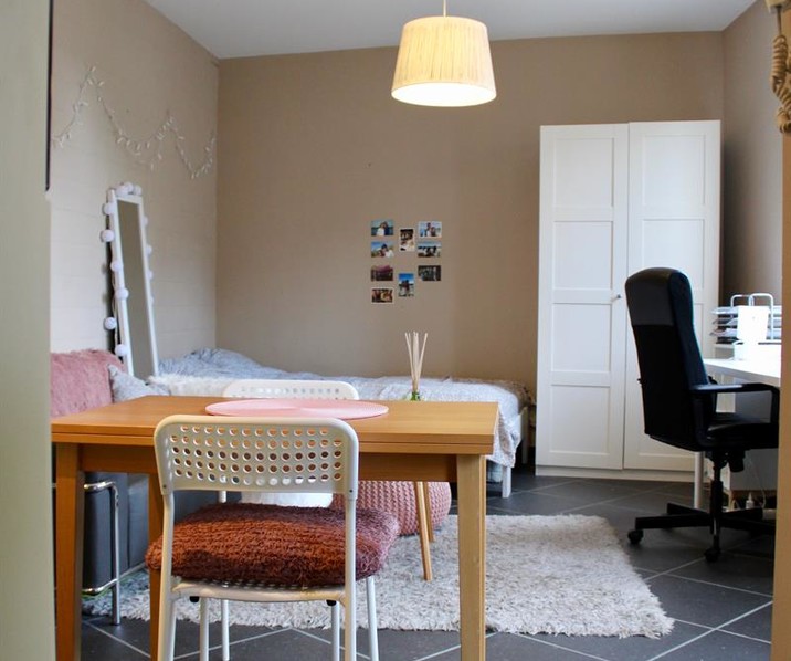 Deze studentenkamer op de eerste verdieping omvat eigen een keuken, eigen aparte badkamer met douche, wastafel en toilet. In de leefruimte is er ruimte om een bed te plaatsen. Lichtrijk en modern appartement met afgesloten fietsenstalling op het gelijkvloers. Beschikbaar vanaf september 2025. Exclusief water, elektriciteit en internet. GEEN DOMICILIE MOGELIJK! Contacteer ons voor een bezoek!