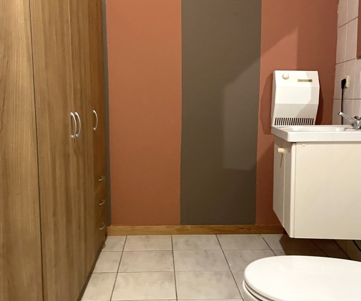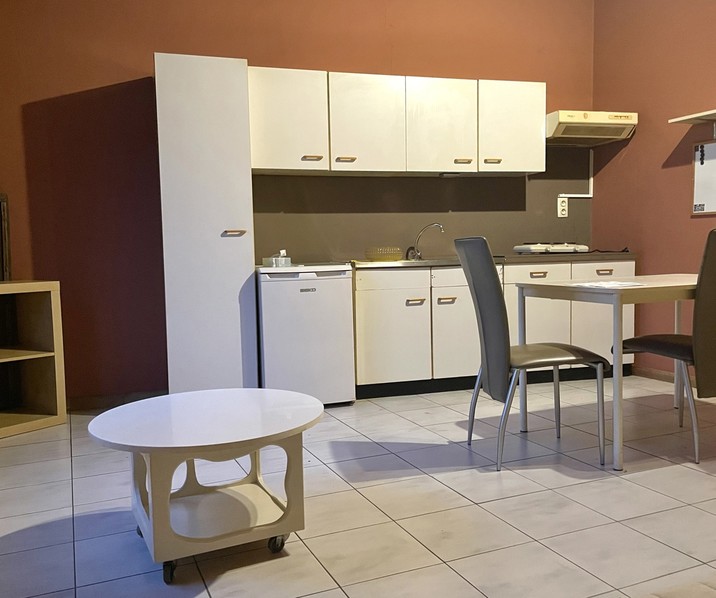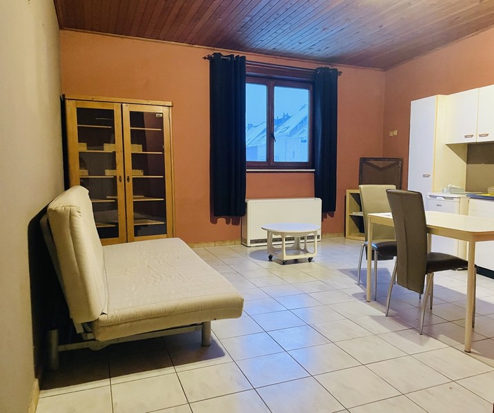 Deze studio is gelegen op de eerste verdieping in een gebouw zonder lift. De studio bevindt zich in een rustige straat op slechts 10 min van E40 en vlakbij scholen, winkels en openbare instellingen. De studio bestaat uit een leefruimte met open keuken (spoelbak, dampkap, kookplaat en koelkast) en mogelijkheid tot plaatsen van een bed. Verder beschikt de studio over een badkamer met douche, toilet en enkele wastafel. Parkeerplaats inbegrepen in de huurprijs. Huurprijs: 530 ,- EUR/maand inclusief verbruik water en vuilnisophaling. Geen gemeenschappelijke lasten.
