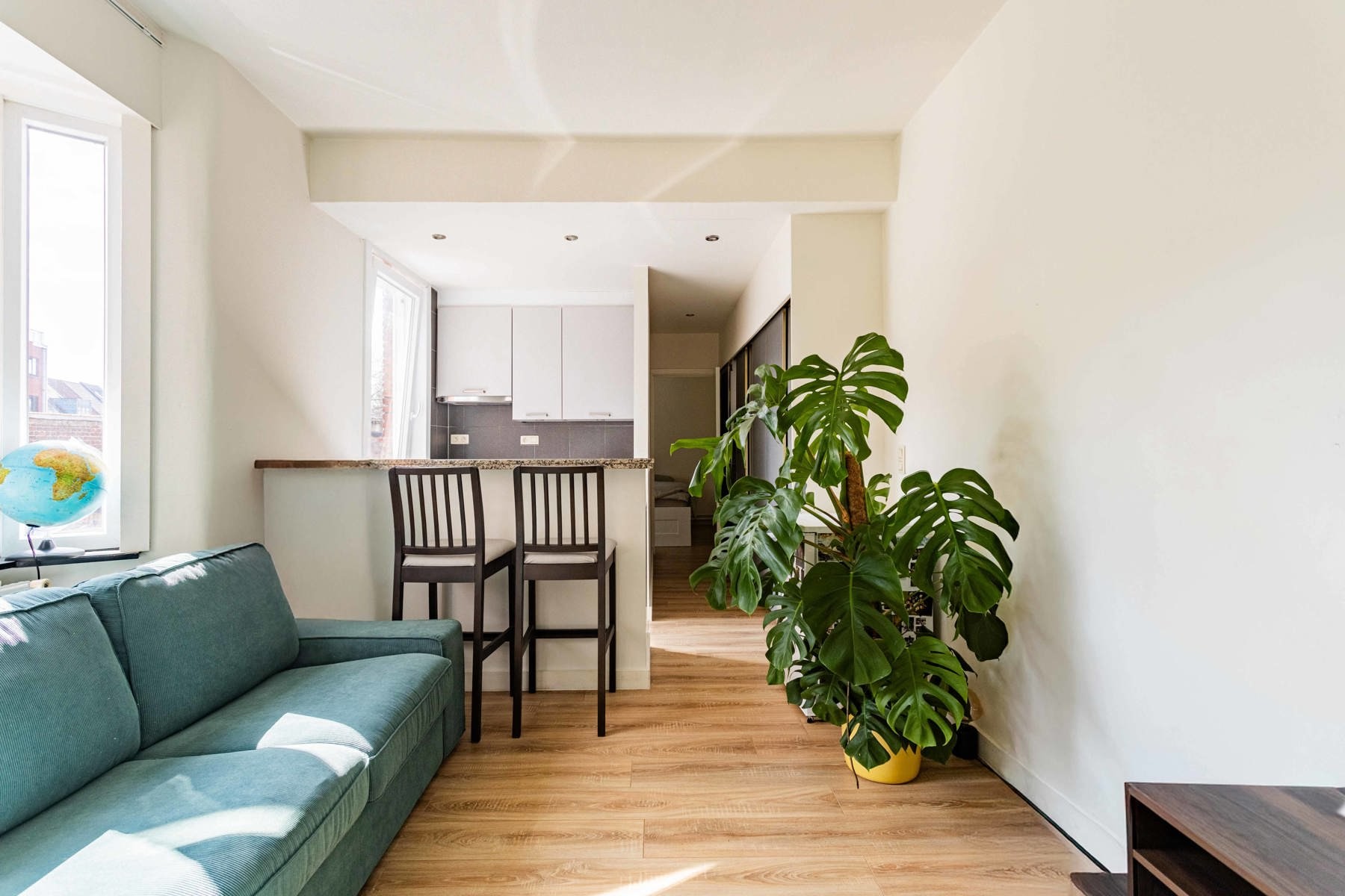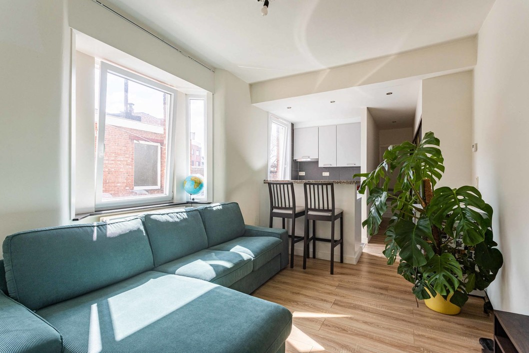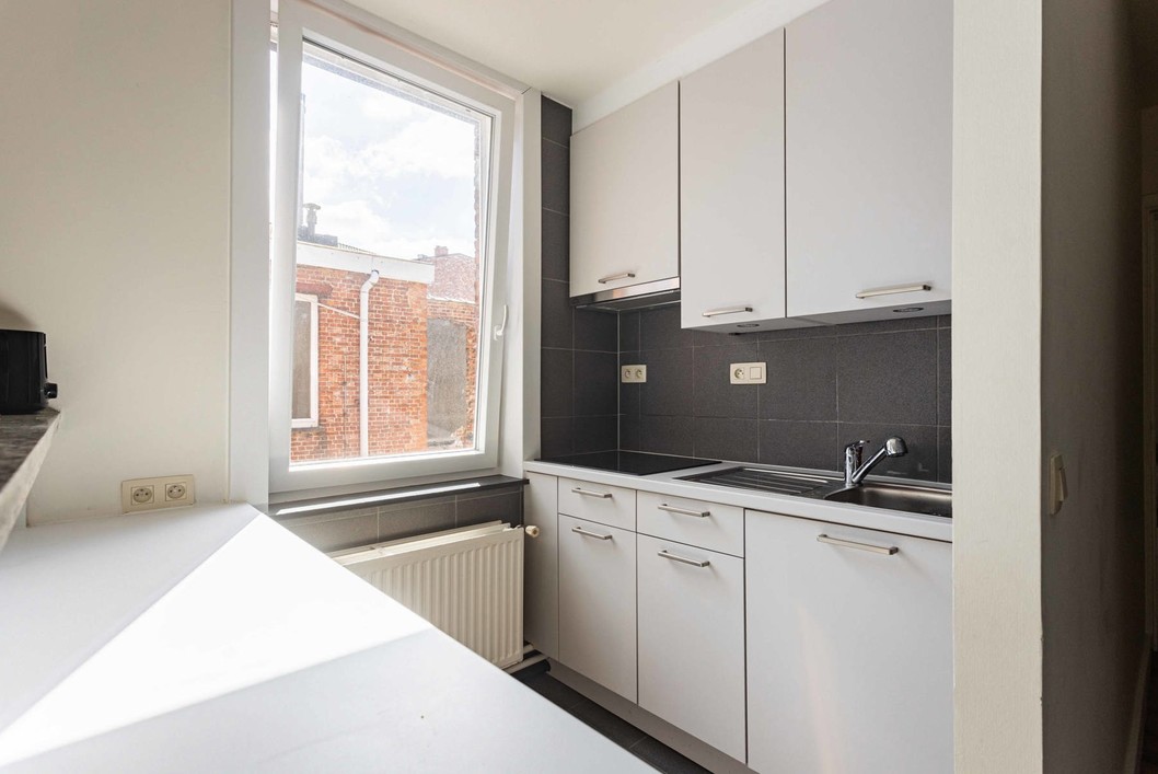 Deze volledig gerenoveerde studio is gelegen in het centrum van Aalst op wandelafstand van scholen, winkels en station. De studio bevindt zich op de eerste verdieping in een gebouw zonder lift en bestaat uit een inkomhal, apart toilet, leefruimte met open keuken (kookplaat, dampkap, spoelbak) en slaapkamer met ensuite badkamer (inloopdouche en enkele wastafel) de studio beschikt tevens over een ingemaakte kastenwand. Dankzij de uitmuntende ligging is deze studio ideaal als starters appartement!