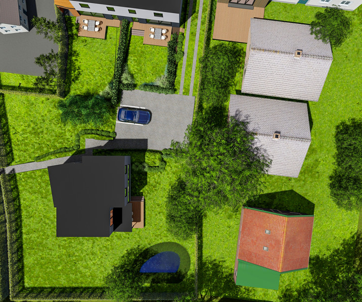 Kleinschalig en energiezuinig project met 3 woningen (2 halfopen, 1 open), rustig gelegen en vlot bereikbaar via de E40 en Oudenaardsesteenweg.